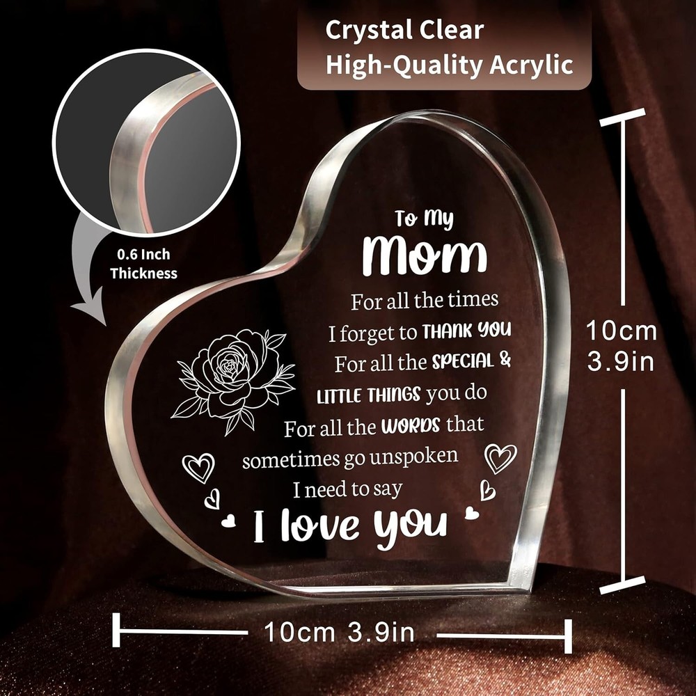 Gifts for Mom, Mom Birthday Gifts - Acrylic Keepsake 3.9X3.9 Inch - I Love You M Color transparent Material Acrylic Theme Love Mom Recommended Uses For Product Decoration, Gift-giving for moms on special occasions 【Gift for Mom to Show Your Love】- This gifts for mom acrylic sign engraved with an classic saying to mom, will always remind your mom of your love and appreciation for her. This is the highest compliment to a mother, makes the best christmas gifts for mom from son daughter 【High-quality Material】- Our mom christmas gifts are made of high-quality acrylic, which is smooth in surface, sturdy and not easy to break, and able to serve you for a long time. A wonderful mom birthday gift to let your mom know how thankful you are for all she's done over the years Return Policy: We offer a 30 day return policy from the receiving date. Please contact us for a Return Label. Please use our return label provided by us because it will go back to our supplier. Feedback: Your satisfaction is very important to us! If you have any problem with your order, please contact us and we will do our very best to make you satisfied. As long as you are happy with your purchase, please leave a positive feedback for us. We will always leave you a positive feedback in return. If you have any problem with your purchase, please do not leave a negative feedback. Please Contact us ... and your issue will be solved quickly and positively We are a small family-owned business trying to make it, not a huge company that doesn't care ... We will ALWAYS do our best for you!