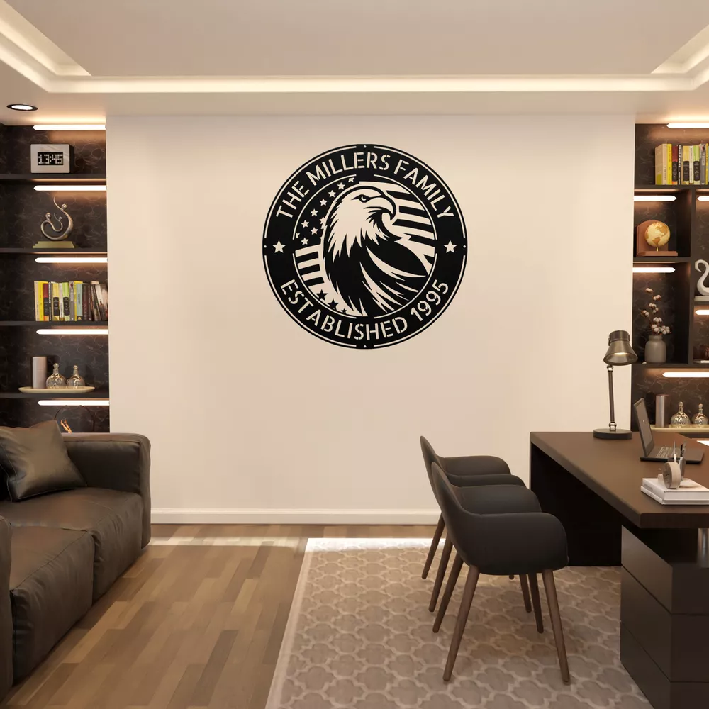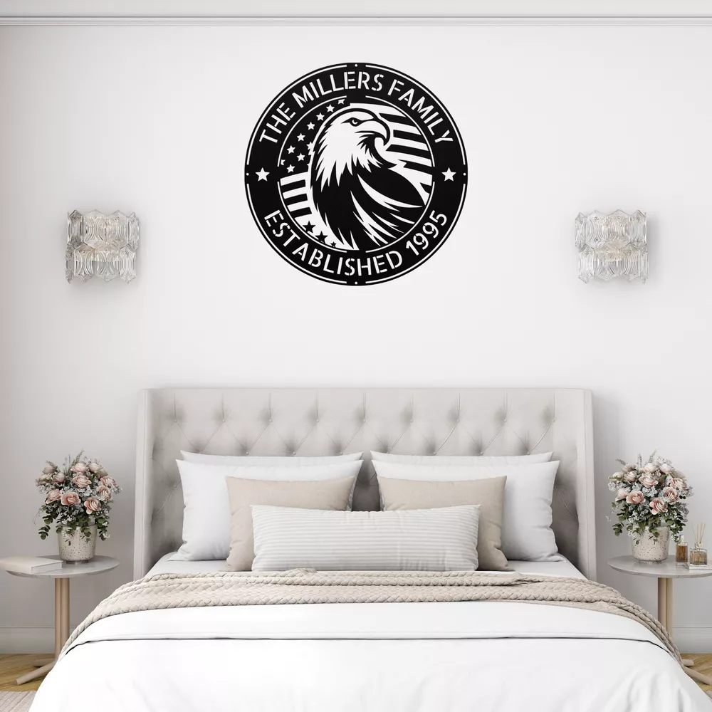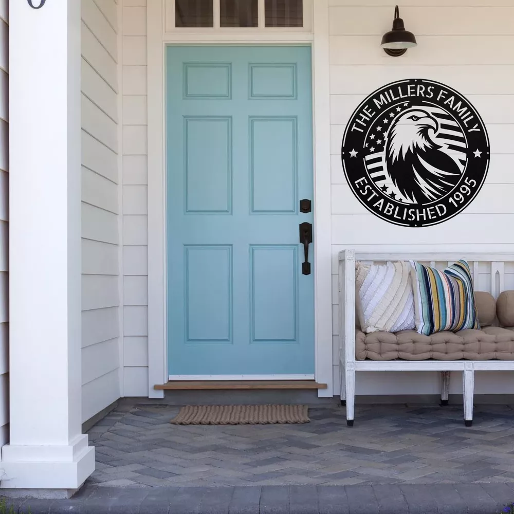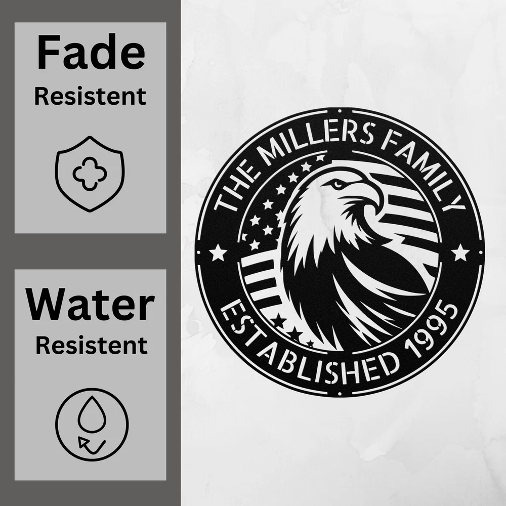 Product Description Personalized American Eagle Metal Sign Custom Name Home Decor Gift for Patriot Showcase your patriotism with our Personalized American Eagle Metal Sign . This stunning piece of art adds a bold statement to any space and makes for a thoughtful gift for family and friends. Crafted from 16 gauge high-quality metal , this sign is built to withstand the elements. The powder coating finish makes it dust, weather, and water resistant, ensuring it looks great indoors or outdoors. Key features include: Customizable Design: Personalize with names or special dates for a unique touch. Durable Construction: Made from sturdy metal to last for years. Perfect Gift: Ideal for Christmas, birthdays, holidays, or any special occasion. Versatile Decoration: Suitable for home, office, or outdoor display, enhancing any setting. Celebrate your love for country with the Personalized American Eagle Metal Sign . Order now and add a personal touch to your decor! Service and Color Choice Our metal signs are designed to be personalized just for you, making them the perfect addition to any space! The default color for our signs is Black , but we also offer a variety of beautiful options including Copper, Gold, White, and Silver . After placing your order, simply contact us with your preferred color choice, and we'll ensure your sign is exactly how you envision it. Let’s create something special together!