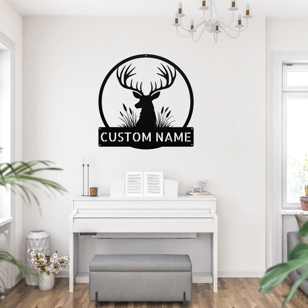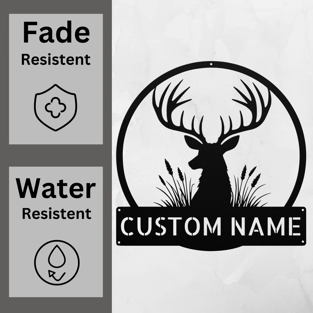 Product Description Personalized Antler Metal Sign Custom Cabin Decor Unique Gift for Nature Lovers Enhance your decor with our Personalized Antler Metal Sign ! This beautiful piece is perfect for those who love nature and want to add a rustic touch to their home or office. Made from 16 gauge high-quality metal , this sign is built to last. With a powder coating , it’s dust, weather, and water resistant, making it suitable for both indoor and outdoor display. Key features include: Customizable Design: Add your name or a special message to make it truly yours. Durable Material: Crafted from sturdy metal to withstand the test of time. Perfect Gift Idea: A wonderful choice for Christmas, birthdays, or any special occasion. Versatile Decoration: Great for your home, cabin, office, or even as a unique gift for a friend. Celebrate your love for the outdoors with the Personalized Antler Metal Sign . Order yours today and make your space feel special! Service and Color Choice Our metal signs are designed to be personalized just for you, making them the perfect addition to any space! The default color for our signs is Black , but we also offer a variety of beautiful options including Copper, Gold, White, and Silver . After placing your order, simply contact us with your preferred color choice, and we'll ensure your sign is exactly how you envision it. Let’s create something special together!