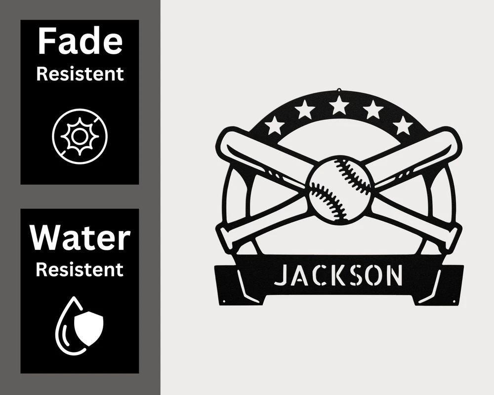 Product Description Personalized Baseball Metal Sign Custom Sports Decor Baseball Player Fans Gift Show your love for baseball with our Personalized Baseball Metal Sign ! This stylish and durable sign is perfect for any baseball enthusiast and makes a fantastic addition to your home, office, or sports room. Made from 16 gauge high-quality metal , this sign is designed to last. The powder coating provides excellent protection, making it dust, weather, and water-resistant for both indoor and outdoor use. Key features include: Customizable Design: Personalize it with a name, team, or special message to make it uniquely yours. Durable Construction: Crafted from sturdy metal to withstand the test of time. Great Gift Idea: Perfect for birthdays, Christmas, or any special occasion for baseball lovers. Versatile Decoration: Ideal for homes, offices, or anywhere you want to showcase your passion for the game. Celebrate your love for baseball with the Personalized Baseball Metal Sign ! Order yours today and add a personalized touch to your decor! Service and Color Choice Our metal signs are designed to be personalized just for you, making them the perfect addition to any space! The default color for our signs is Black , but we also offer a variety of beautiful options including Copper, Gold, White, and Silver . After placing your order, simply contact us with your preferred color choice, and we'll ensure your sign is exactly how you envision it. Let’s create something special together!