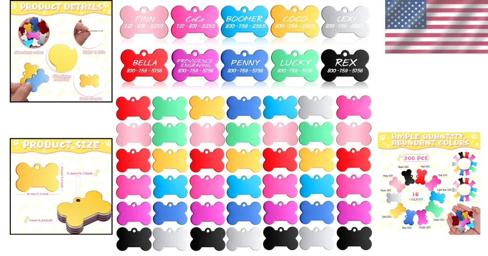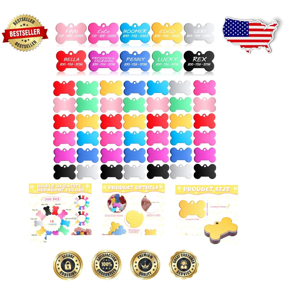 Personalized Bone-Shaped Pet ID Tags - Engrave Names & Numbers, 200 Pack ‹ › ‹ › ‹ › ‹ › ‹ › ‹ › ‹ › ‹ › ‹ › Personalized Bone-Shaped Pet ID Tags Engrave Names & Numbers - 200 Pack Features: Includes 200 pieces of blank dog tags in 10 vibrant colors (20 pieces per color) - perfect for all breeds and sizes of pets. Constructed from high-quality aluminum alloy - ensuring rust and corrosion resistance, as well as scratch resistance. Each tag measures approximately 3.8 x 2.5 x 0.1 cm (1.5 x 1 x 0.1 inch)—a size that is just right for pet collars. Charming bone shape design that is both eye-catching and functional - perfect for enhancing your pet's style. Polished mirror surface allows for clear, permanent laser engraving or handwriting with a marker. Benefits: Ample quantity and diversity of colors to meet various personalization needs. Durable and long-lasting, ensuring your pet's ID stays intact over time. Perfect for DIY enthusiasts who want to add personal flair with engraved names or cute patterns. Wide application as ID tags, in addition to being suitable for small animals such as cats and other pets. Great gift option; share with family and friends who have pets. Why choose our Personalized Bone-Shaped Pet ID Tags? Elevate your pet's safety and style with our Personalized Bone-Shaped Pet ID Tags. Crafted from quality aluminum alloy, these tags are not only designed to last but also shine brightly against your pet's collar. The large pack of 200 ensures that you can customize each tag to perfection, providing every pet in your life with a unique identifier. Equip your beloved companions with these charming tags that reflect their personality while ensuring vital information is always close at hand. Don't wait—safeguard your pet's adventure today with our vibrant and durable ID tags! Shipping Free & Fast Shipping - We offer free shipping to most of the USA with a normal delivery time of 3-7 days. However, due to the current situation, additional delivery time (up to 3 weeks) may be required for some items. Alternative Carriers - We may use alternative carriers (e.g. USPS, FedEx, UPS, etc.) to ensure your package arrives safely and on time. Due to the use of multiple carriers, we are unable to provide a tracking number automatically. Handling Time - Orders are processed and shipped within 1-2 business days of receiving cleared payment. Shipping Restrictions - Shipping to Alaska, Hawaii, Puerto Rico, Guam, and other US territories may incur shipping charges or delivery restrictions. Please contact us before ordering, or your order can be refunded/cancelled. State Restrictions - There may be restrictions based on your state of purchase. For example, certain items may not be shipped to California due to state regulations. Contact for Tracking Updates - If you require tracking updates or have any concerns about the delivery of your order, please feel free to contact us, and we will be happy to assist you. Return 30-Day Hassle-Free Returns - We want you to be completely satisfied with your purchase. If you are not, you can return the item within 30 days of receiving it for a full refund or exchange. Easy Return Process - To start a return, simply contact us and we will provide you with a prepaid return shipping label and detailed instructions. Restocking Fee - There are no restocking fees for returns. However, the buyer is responsible for return shipping costs if the return is not due to a seller's error. Refund Processing Time - Refunds will be processed within 5 business days of receiving the returned item in its original condition. Payment We accept all major credit cards, PayPal, and Apple Pay for your convenience. Your payment information is secure and encrypted to ensure a safe and seamless transaction. Please complete your payment within 3 days of purchase to avoid any delays in shipping. Feedback Your feedback is extremely important to us. We strive to provide the best products and customer service possible. If you are satisfied with your purchase, please take a moment to leave us a positive review. If you have any concerns or issues with your order, please contact us before leaving negative feedback. We are committed to resolving any problems and ensuring your satisfaction. Contact Us If you have any questions or concerns, please feel free to reach out to our customer support team. You can contact us through the eBay messaging system. We are available Monday to Friday, 9:00 am to 5:00 pm EST, and we will do our best to respond to your inquiry within 24 hours. Buy it now and enjoy a pleasant shopping experience! UPC: Not Set Model: Not Set MPN: Not Set Unit Quantity: 200 Features: Engraved,Scratch Resistant,Colorfast,Double Sided,Polished Surface Type: ID Tag Brand: Unbranded Material: Aluminum Color: Pink Dog Breed: All Gender: Unisex Country/Region of Manufacture: Not Set Unit Type: lb Personalized: Not Set Personalize: Not Set