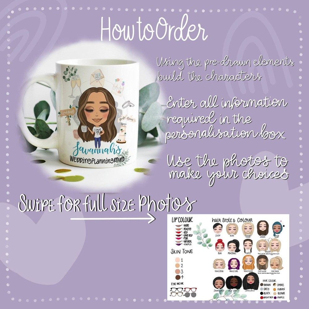 Personalised Wedding Planning Mug Bride To Be Gift Engagement Gift Product Details.. This high quality 11oz. ceramic white mug has a premium hard coat that provides crisp and vibrant color reproduction sure to last for years. Perfect for all hot & cold beverages. The highest quality printing possible is used. It will never fade no matter how many times you wash it. Material: 100% Ceramic. Print both sides. Dishwasher and Microwave Safe. High Gloss + Premium White Finish. Printed in the U.S.A. Personalized & Custom. We support personalized and custom mug to add custom, when placing an order, you can add notes to the "order note" in shipping address section. Also you can contact us directly via message. Shipping Info. Ready to ship in 1 to 2 business days, All products are made-to-order and proudly printed in the United States. Shipped by USPS and DHL, You will receive your order in 5-7 days. Replace & Refund. All products are defective during shipping broken, chipped will be replaced free of charge. You are not satisfied with the product, we will refund 100% money to you. If any other issues arise, please do not hesitate to message, we would be more than happy to assist you.