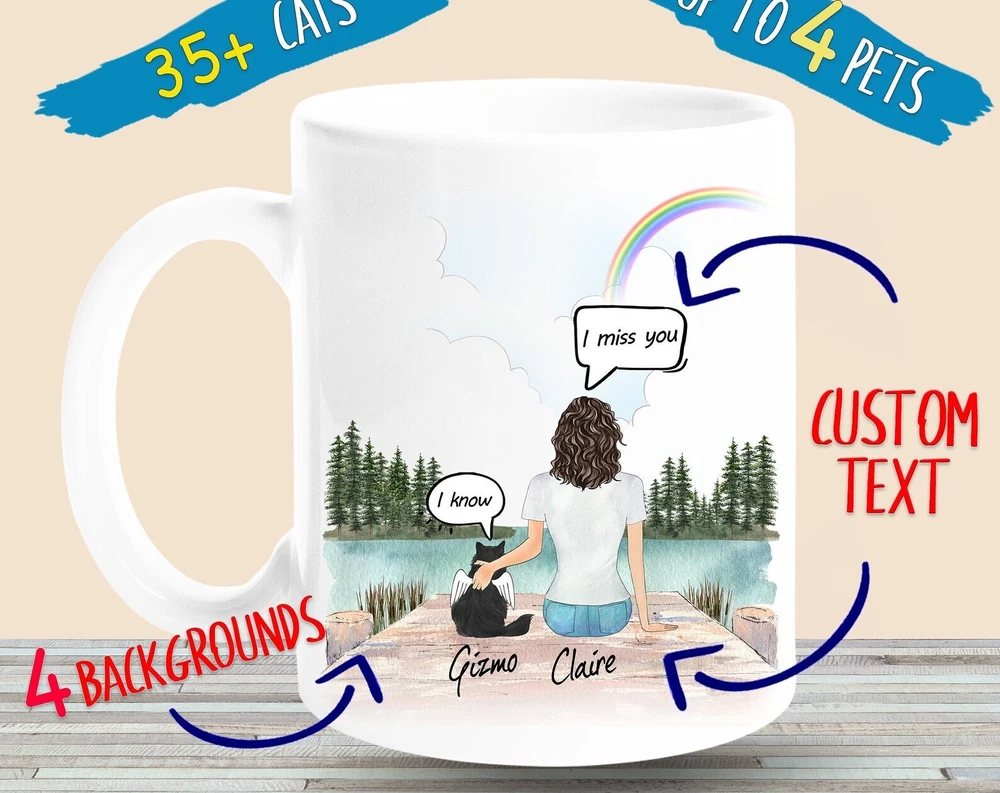 Personalized Cat Mom Memorial Gift Cat Mom Cat Lover Gift Cat Loss Gift They Still Talk About You In Memory Of Cat Pet Memorial Mug Product Details.. This high quality 11oz. ceramic white mug has a premium hard coat that provides crisp and vibrant color reproduction sure to last for years. Perfect for all hot & cold beverages. The highest quality printing possible is used. It will never fade no matter how many times you wash it. Material: 100% Ceramic. Print both sides. Dishwasher and Microwave Safe. High Gloss + Premium White Finish. Printed in the U.S.A. Personalized & Custom. We support personalized and custom mug to add custom, when placing an order, you can add notes to the "order note" in shipping address section. Also you can contact us directly via message. Shipping Info. Ready to ship in 1 to 2 business days, All products are made-to-order and proudly printed in the United States. Shipped by USPS and DHL, You will receive your order in 5-7 days. Replace & Refund. All products are defective during shipping broken, chipped will be replaced free of charge. You are not satisfied with the product, we will refund 100% money to you. If any other issues arise, please do not hesitate to message, we would be more than happy to assist you.