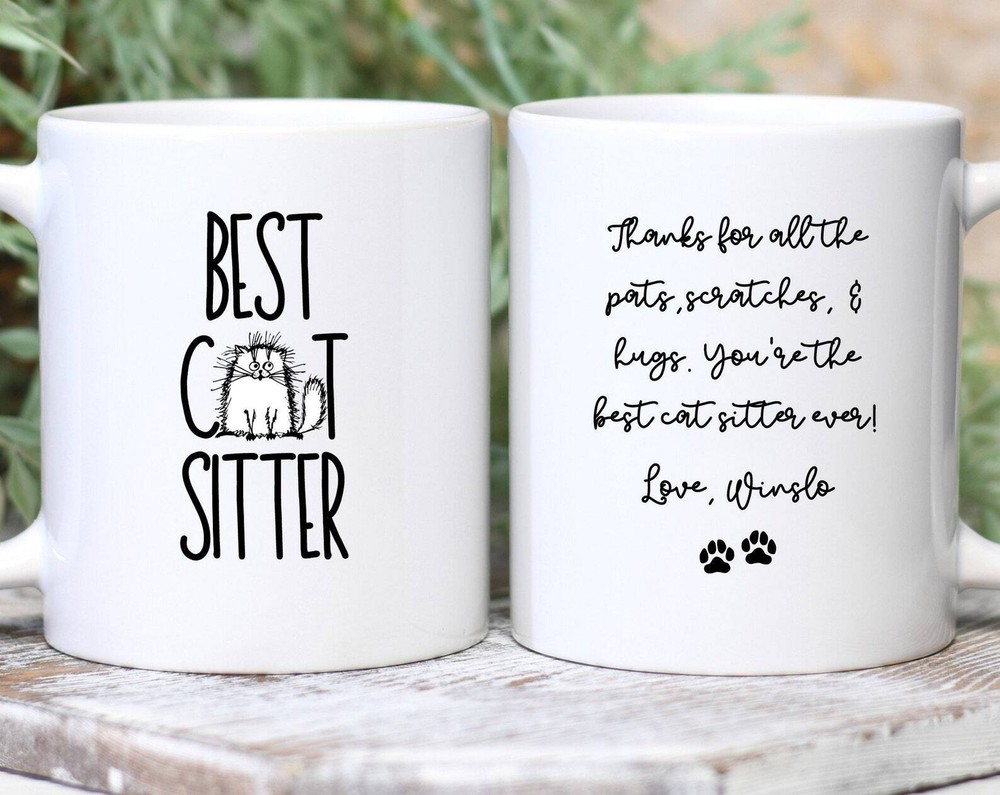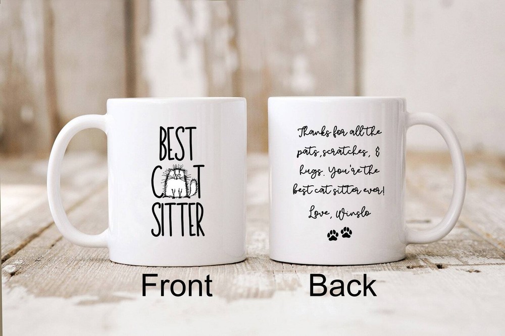 Best Cat Sitter Mug Cat Sitter Cup Cat Sitter Gift Pet Sitter Gift Personalized Product Details.. This high quality 11oz. ceramic white mug has a premium hard coat that provides crisp and vibrant color reproduction sure to last for years. Perfect for all hot & cold beverages. The highest quality printing possible is used. It will never fade no matter how many times you wash it. Material: 100% Ceramic. Print both sides. Dishwasher and Microwave Safe. High Gloss + Premium White Finish. Printed in the U.S.A. Personalized & Custom. We support personalized and custom mug to add custom, when placing an order, you can add notes to the "order note" in shipping address section. Also you can contact us directly via message. Shipping Info. Ready to ship in 1 to 2 business days, All products are made-to-order and proudly printed in the United States. Shipped by USPS and DHL, You will receive your order in 5-7 days. Replace & Refund. All products are defective during shipping broken, chipped will be replaced free of charge. You are not satisfied with the product, we will refund 100% money to you. If any other issues arise, please do not hesitate to message, we would be more than happy to assist you.
