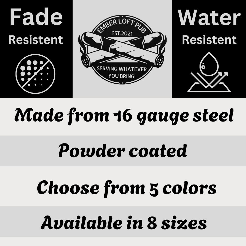 Product Description Create the perfect ambiance for your cigar space with this Personalized Cigar Metal Art Sign . Designed for cigar lovers, lounge owners, bar enthusiasts, or man-cave dΓ©cor fans, this custom metal sign adds a bold and classy touch to any smoking room, home bar, patio lounge, or relaxation area. β¨ Premium Craftsmanship Each piece is laser-cut from durable 16-gauge steel and finished with a high-quality powder coating , offering exceptional resistance to rust, fading, and scratches. Ideal for indoor or covered outdoor use , it maintains its sleek, elegant appearance for years. πΏ Key Features: Fully Personalized: Add your name, lounge name, or custom text Heavy-Duty Steel: Long-lasting 16-gauge metal construction Classic Cigar Design: Perfect for bars, lounges, man caves, patios, or smoking rooms Multiple Sizes: 8ββ30β options, custom sizing available Easy to Hang: Pre-drilled holes for quick, hassle-free installation Color Choices: Black, gold, white, or silver powder-coat finish π A Thoughtful Gift for Cigar Enthusiasts Makes a standout gift for birthdays, Fatherβs Day, holidays, bar owners, or any cigar aficionado looking to upgrade their smoking space. π« Elevate Your Lounge in Style Add character, sophistication, and a personalized touch to your smoking room with this Custom Cigar Metal Art Sign βa perfect blend of craftsmanship and style. Service and Color Choice My metal signs are designed to be personalized just for you, making them the perfect addition to any space! The default color is Black , but I also offer a variety of beautiful options including Copper, Gold, White, and Silver . After placing your order, simply contact me with your preferred color choice, and I'll ensure your sign is exactly how you envision it. Letβs create something special together! π How Metal Signs Are Measured Metal signs are measured from the widest point to the opposite widest point of the design. The listed size (8β, 10β, 12β, 18β, 24β, 30β, 36β, etc.) always refers to the longest edge of the artwork, not the height only and not the width only. Because every design has its own shape and proportions, the other dimension (height or width) will adjust automatically . π Example (30-Inch Size) When selecting a 30-inch sign , the longest side of the design will measure 30 inches . If the design is wider than it is tall: Width = 30 inches Height adjusts proportionally (often around 18β22 inches depending on the design) If the design is taller than it is wide: Height = 30 inches Width adjusts proportionally This ensures the sign keeps its correct proportions and the original shape, no matter which size is selected. π¨ Custom Designs & Logos Welcome Have a special idea in mind? I can make it happen! Whether you need a business logo , family emblem , pet silhouette , or a one-of-a-kind design , I can create it from scratch and turn it into a high-quality metal sign. You can send your concept, sketch, or photo, and Iβll handle the custom design, editing, and production from start to finish. Your vision becomes real metal artwork made exactly the way you want it. β¨ Custom Any Design: If you have a special idea in mind, I can turn it into a metal sign, just message me! π¦ Ordering & Gift-Ready Each sign is crafted to order with great care and attention to detail. Your piece arrives ready to hang , making it easy to display or give as a thoughtful gift. Whether it's for your home or for someone special, every sign is made to impress and last for years. π Your support means the world to me and my family. Thank you for helping keep this small art business growing. π Production & Shipping Every sign is made to order with a fast turnaround time. Production Time: 1β2 business days Free Shipping: UPS Ground (estimated 2β5 business days ) Expedited Shipping: FedEx 2-Day Delivery available at checkout Shipping Location: All orders ship from Indiana, USA Each order is packed securely to ensure your metal sign arrives safely and ready to display.