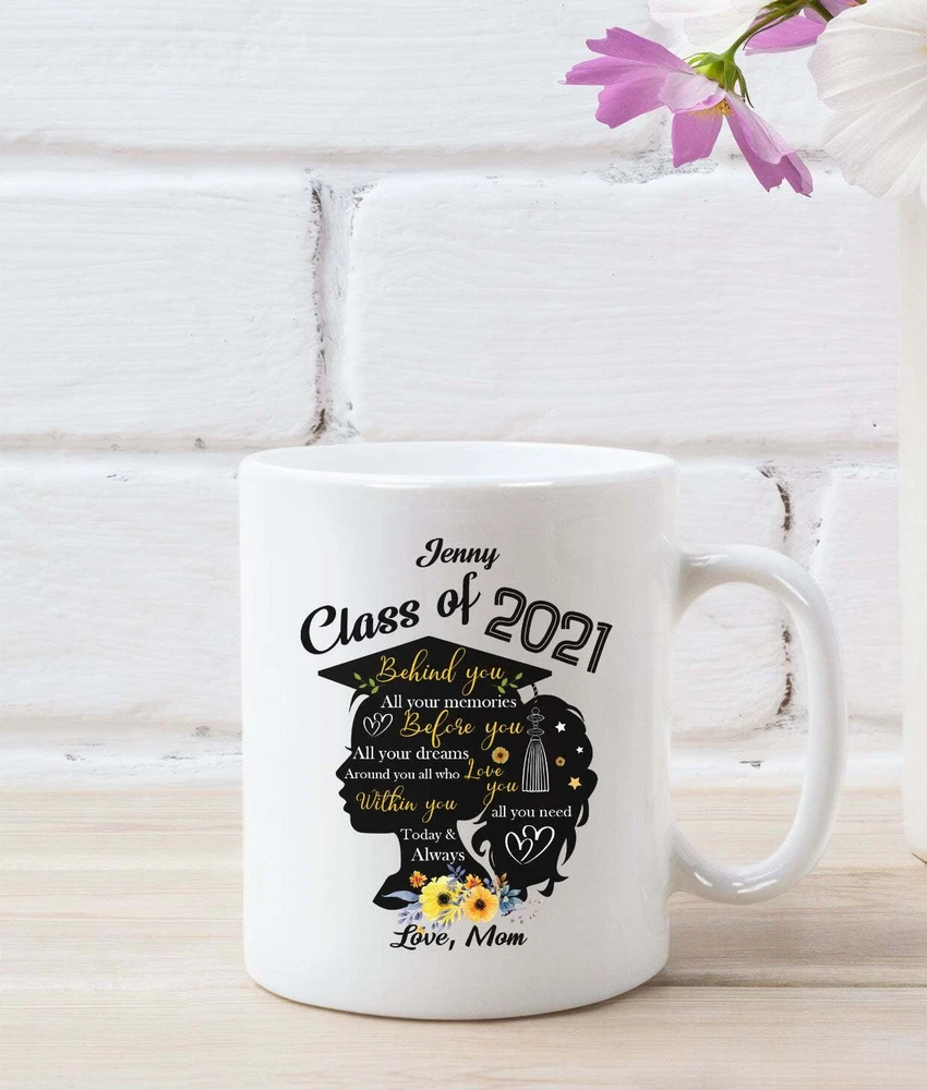 Personalized Class Of 2021 Mug Graduation Gift Senior 2021 Daughter Gift From Product Details.. This high quality 11oz. ceramic white mug has a premium hard coat that provides crisp and vibrant color reproduction sure to last for years. Perfect for all hot & cold beverages. The highest quality printing possible is used. It will never fade no matter how many times you wash it. Material: 100% Ceramic. Print both sides. Dishwasher and Microwave Safe. High Gloss + Premium White Finish. Printed in the U.S.A. Personalized & Custom. We support personalized and custom mug to add custom, when placing an order, you can add notes to the "order note" in shipping address section. Also you can contact us directly via message. Shipping Info. Ready to ship in 1 to 2 business days, All products are made-to-order and proudly printed in the United States. Shipped by USPS and DHL, You will receive your order in 5-7 days. Replace & Refund. All products are defective during shipping broken, chipped will be replaced free of charge. You are not satisfied with the product, we will refund 100% money to you. If any other issues arise, please do not hesitate to message, we would be more than happy to assist you.
