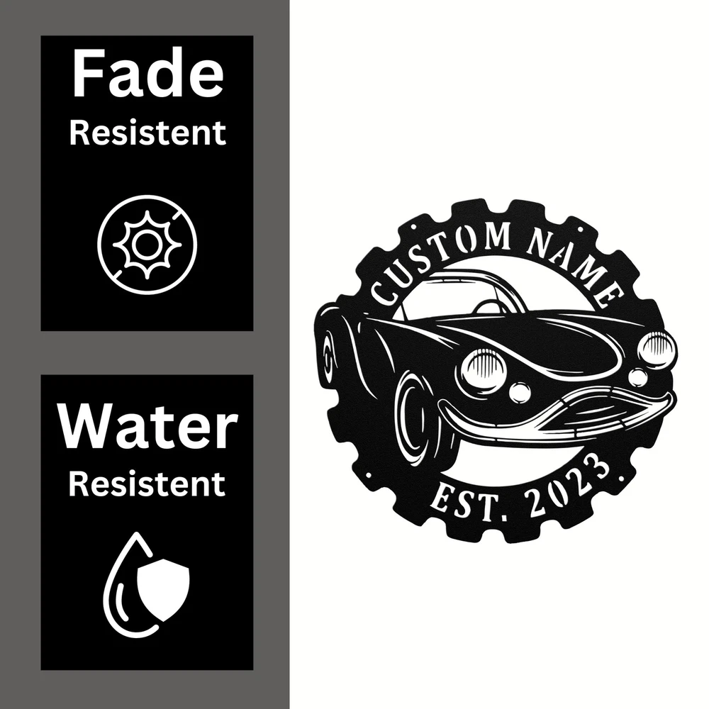 Product Description Personalized Classic Car Metal Sign Custom Vintage Car Decor Gift for Car Lovers Rev up your decor with our Personalized Classic Car Metal Sign ! Perfect for car lovers, this sign adds a nostalgic touch to any space. Crafted from 16 gauge high-quality metal , this sign is designed for durability. The powder coating provides a dust, weather, and water-resistant finish, making it suitable for both indoor and outdoor display. Key features include: Customizable Design: Personalize it with your name or a special message to make it truly yours. Sturdy Construction: Built to withstand the elements while retaining its stunning appearance. Great Gift Idea: Ideal for Christmas, birthdays, or any special occasion for car enthusiasts in your life. Stylish Decor: Perfect for your garage, man cave, or office, showcasing your love for classic cars. Celebrate your passion for vintage automobiles with the Personalized Classic Car Metal Sign . It’s more than just a sign; it’s a statement piece for any car aficionado! Service and Color Choice Our metal signs are designed to be personalized just for you, making them the perfect addition to any space! The default color for our signs is Black , but we also offer a variety of beautiful options including Copper, Gold, White, and Silver . After placing your order, simply contact us with your preferred color choice, and we'll ensure your sign is exactly how you envision it. Let’s create something special together!