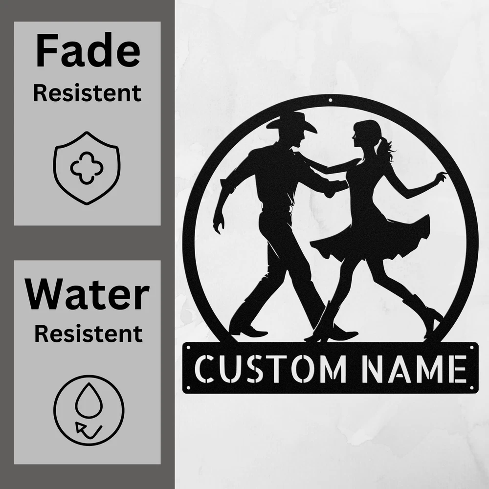 Product Description Personalized Couple Line Dancing Metal Sign Custom Country Dance Wall Art Gift Get ready to kick up your heels with this Personalized Couple Line Dancing Metal Sign ! Made from high-quality 16 gauge metal, this custom country dance wall art is perfect for anyone who loves to dance. Its durable powder coating makes it resistant to dust, weather, and water, making it suitable for both indoor and outdoor use. This personalized sign is a fantastic gift for Christmas, birthdays, or any special occasion. Whether you’re celebrating a love for dancing or looking to add a fun touch to your home or office, this piece is sure to bring joy and personality to any space. Key Features: Customizable Design : Personalize with names or initials for a special touch. High-Quality Material : Crafted from sturdy 16 gauge metal for lasting durability. Weather Resistant : Powder-coated finish protects against dust and moisture. Versatile Decor : Perfect for both indoor and outdoor display. Great Gift Idea : Ideal for dance lovers, couples, or as a unique home decor piece. Celebrate your passion for dancing with this eye-catching metal sign. It’s more than just decor; it’s a tribute to the joy of moving together. Order yours today! Service and Color Choice Our metal signs are designed to be personalized just for you, making them the perfect addition to any space! The default color for our signs is Black , but we also offer a variety of beautiful options including Copper, Gold, White, and Silver . After placing your order, simply contact us with your preferred color choice, and we'll ensure your sign is exactly how you envision it. Let’s create something special together!