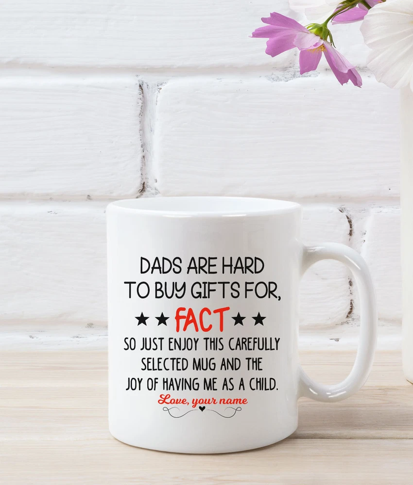 Personalized Dad Coffee Mug Fathers Day Gift Custom Name Text Cup Best Gift For Product Details.. This high quality 11oz. ceramic white mug has a premium hard coat that provides crisp and vibrant color reproduction sure to last for years. Perfect for all hot & cold beverages. The highest quality printing possible is used. It will never fade no matter how many times you wash it. Material: 100% Ceramic. Print both sides. Dishwasher and Microwave Safe. High Gloss + Premium White Finish. Printed in the U.S.A. Personalized & Custom. We support personalized and custom mug to add custom, when placing an order, you can add notes to the "order note" in shipping address section. Also you can contact us directly via message. Shipping Info. Ready to ship in 1 to 2 business days, All products are made-to-order and proudly printed in the United States. Shipped by USPS and DHL, You will receive your order in 5-7 days. Replace & Refund. All products are defective during shipping broken, chipped will be replaced free of charge. You are not satisfied with the product, we will refund 100% money to you. If any other issues arise, please do not hesitate to message, we would be more than happy to assist you.