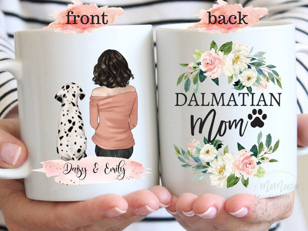 Dalmatian Mom Mug Personalized Dalmatian Dog Lover Gift Dog Mom Gift Dalmatian Product Details.. This high quality 11oz. ceramic white mug has a premium hard coat that provides crisp and vibrant color reproduction sure to last for years. Perfect for all hot & cold beverages. The highest quality printing possible is used. It will never fade no matter how many times you wash it. Material: 100% Ceramic. Print both sides. Dishwasher and Microwave Safe. High Gloss + Premium White Finish. Printed in the U.S.A. Personalized & Custom. We support personalized and custom mug to add custom, when placing an order, you can add notes to the "order note" in shipping address section. Also you can contact us directly via message. Shipping Info. Ready to ship in 1 to 2 business days, All products are made-to-order and proudly printed in the United States. Shipped by USPS and DHL, You will receive your order in 5-7 days. Replace & Refund. All products are defective during shipping broken, chipped will be replaced free of charge. You are not satisfied with the product, we will refund 100% money to you. If any other issues arise, please do not hesitate to message, we would be more than happy to assist you.