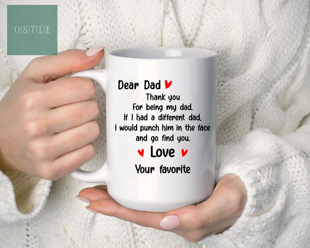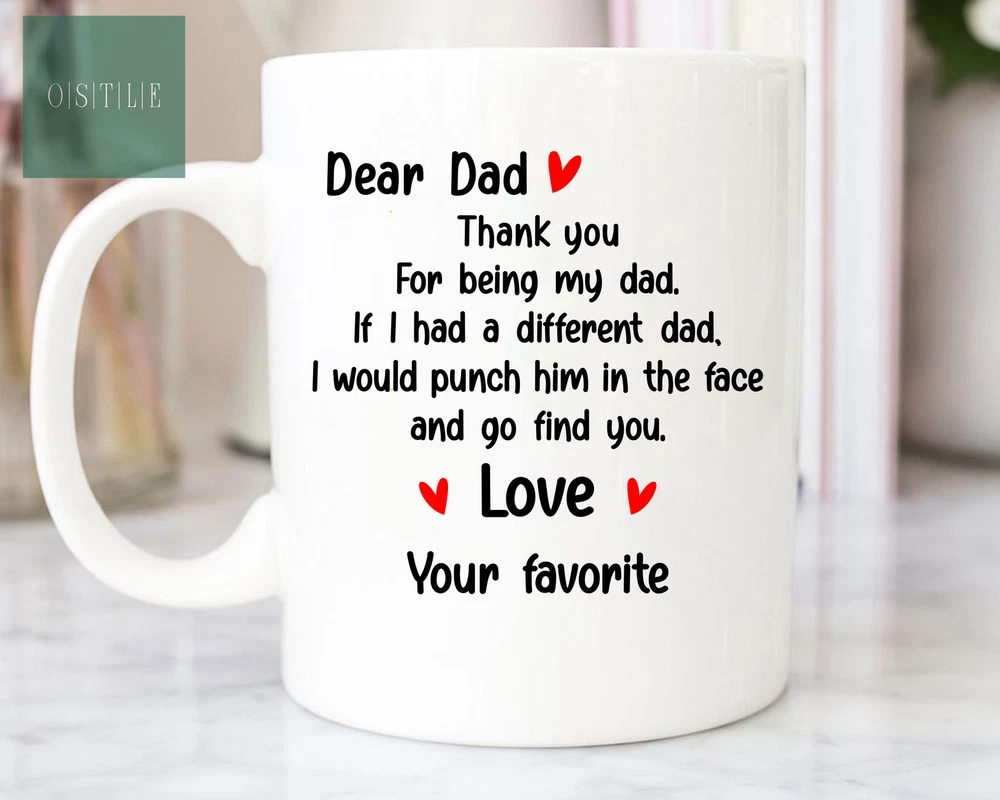 Personalized Dear Dog Dad Thank You For Being My Dad Mug Father's Day Gift For Product Details.. This high quality 11oz. ceramic white mug has a premium hard coat that provides crisp and vibrant color reproduction sure to last for years. Perfect for all hot & cold beverages. The highest quality printing possible is used. It will never fade no matter how many times you wash it. Material: 100% Ceramic. Print both sides. Dishwasher and Microwave Safe. High Gloss + Premium White Finish. Printed in the U.S.A. Personalized & Custom. We support personalized and custom mug to add custom, when placing an order, you can add notes to the "order note" in shipping address section. Also you can contact us directly via message. Shipping Info. Ready to ship in 1 to 2 business days, All products are made-to-order and proudly printed in the United States. Shipped by USPS and DHL, You will receive your order in 5-7 days. Replace & Refund. All products are defective during shipping broken, chipped will be replaced free of charge. You are not satisfied with the product, we will refund 100% money to you. If any other issues arise, please do not hesitate to message, we would be more than happy to assist you.