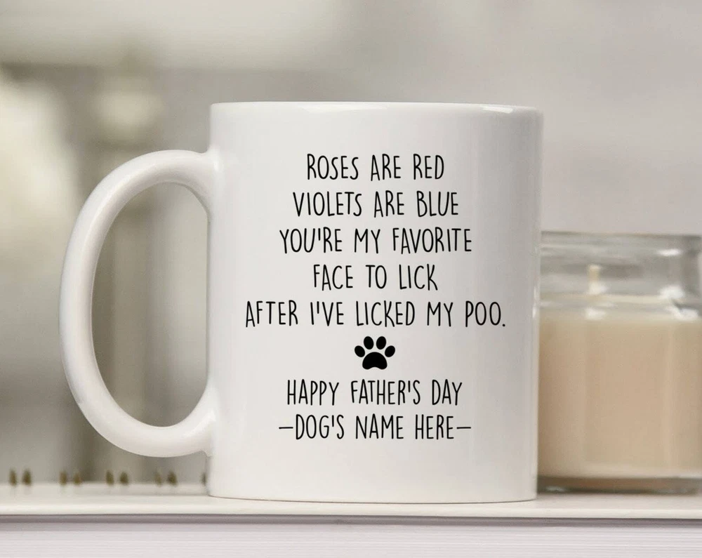 Personalized Dog Dad Coffee Mug Funny Gift From Dog To Dad Pet Father Gift Ideas Product Details.. This high quality 11oz. ceramic white mug has a premium hard coat that provides crisp and vibrant color reproduction sure to last for years. Perfect for all hot & cold beverages. The highest quality printing possible is used. It will never fade no matter how many times you wash it. Material: 100% Ceramic. Print both sides. Dishwasher and Microwave Safe. High Gloss + Premium White Finish. Printed in the U.S.A. Personalized & Custom. We support personalized and custom mug to add custom, when placing an order, you can add notes to the "order note" in shipping address section. Also you can contact us directly via message. Shipping Info. Ready to ship in 1 to 2 business days, All products are made-to-order and proudly printed in the United States. Shipped by USPS and DHL, You will receive your order in 5-7 days. Replace & Refund. All products are defective during shipping broken, chipped will be replaced free of charge. You are not satisfied with the product, we will refund 100% money to you. If any other issues arise, please do not hesitate to message, we would be more than happy to assist you.