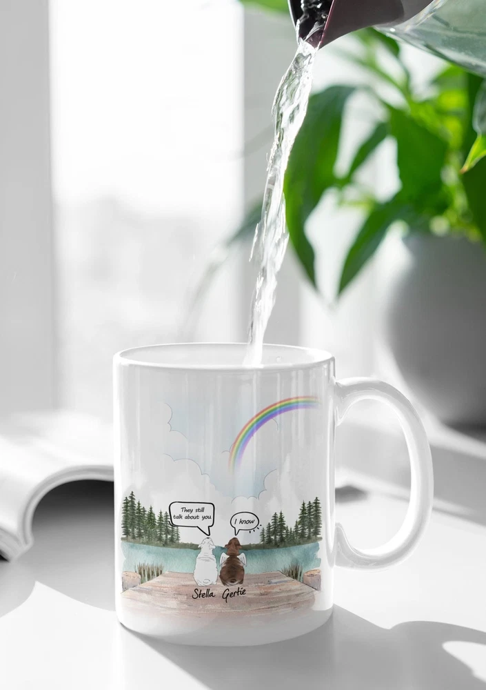 Personalized Dog Memorial Gift Dog Mom Dog Lover Gift Custom Dog Portrait They Still Talk About You Dog Coffee Mug Product Details.. This high quality 11oz. ceramic white mug has a premium hard coat that provides crisp and vibrant color reproduction sure to last for years. Perfect for all hot & cold beverages. The highest quality printing possible is used. It will never fade no matter how many times you wash it. Material: 100% Ceramic. Print both sides. Dishwasher and Microwave Safe. High Gloss + Premium White Finish. Printed in the U.S.A. Personalized & Custom. We support personalized and custom mug to add custom, when placing an order, you can add notes to the "order note" in shipping address section. Also you can contact us directly via message. Shipping Info. Ready to ship in 1 to 2 business days, All products are made-to-order and proudly printed in the United States. Shipped by USPS and DHL, You will receive your order in 5-7 days. Replace & Refund. All products are defective during shipping broken, chipped will be replaced free of charge. You are not satisfied with the product, we will refund 100% money to you. If any other issues arise, please do not hesitate to message, we would be more than happy to assist you.