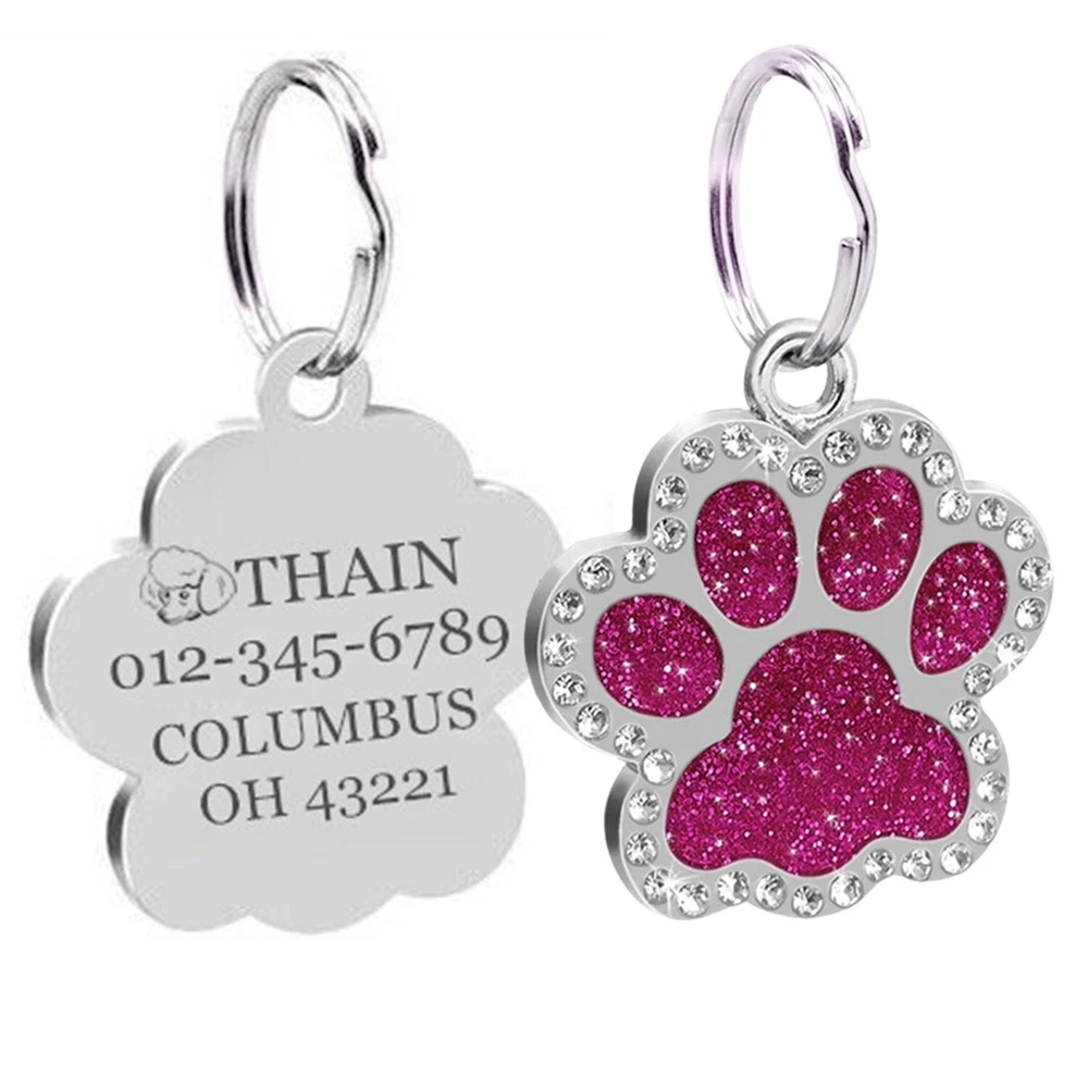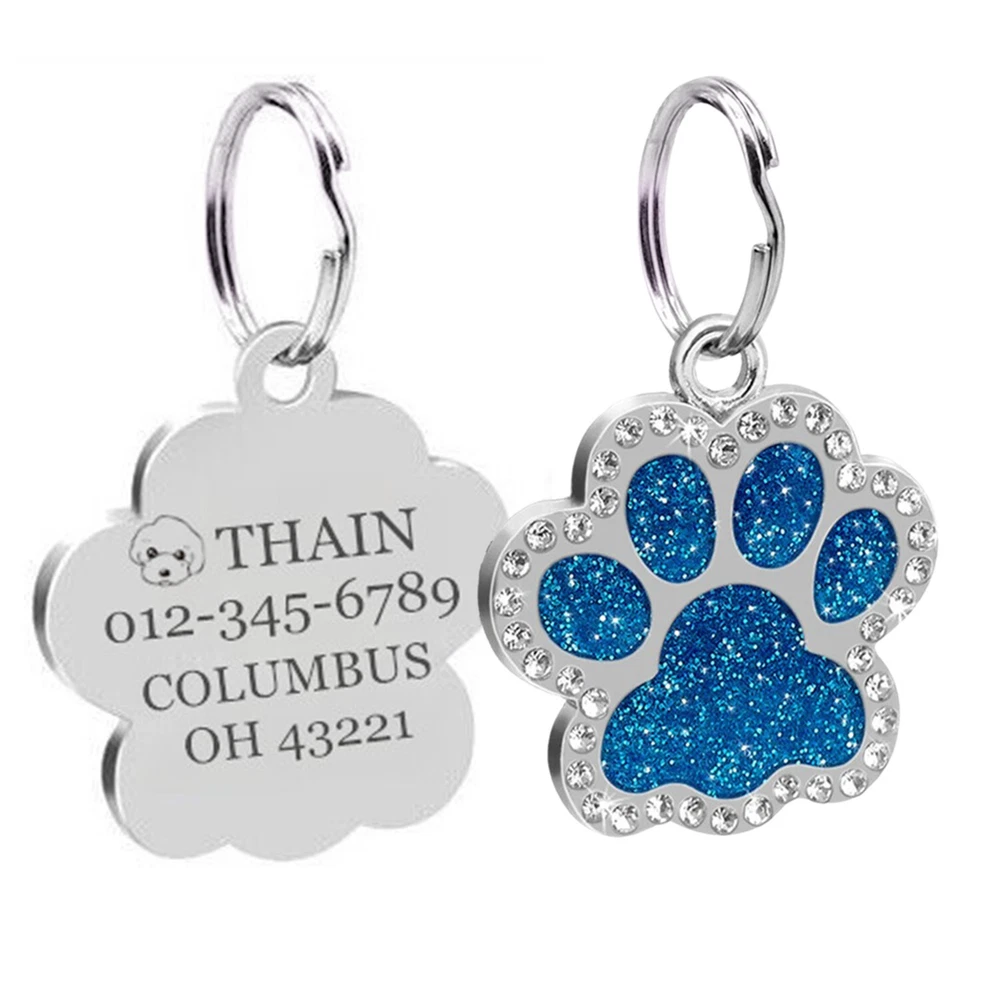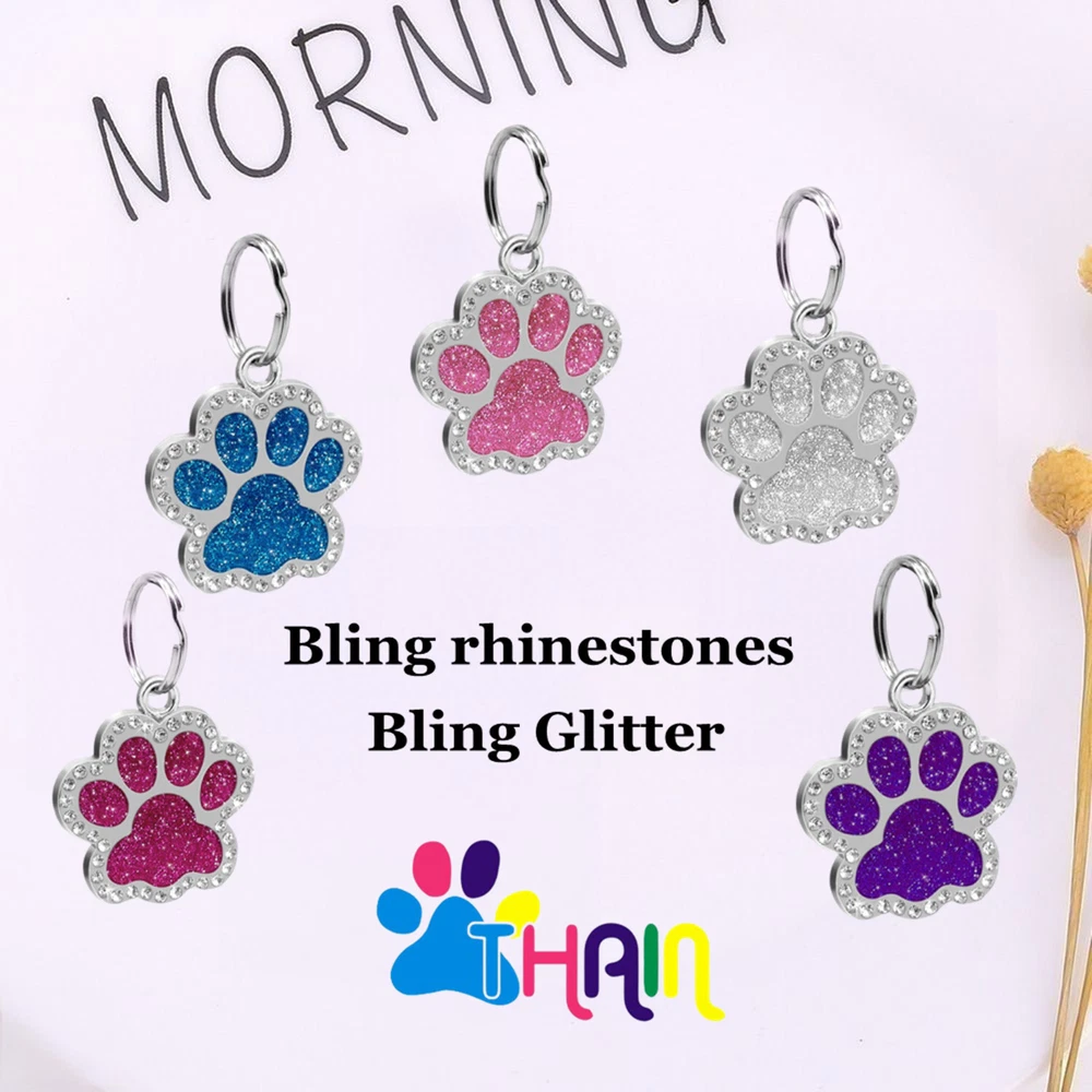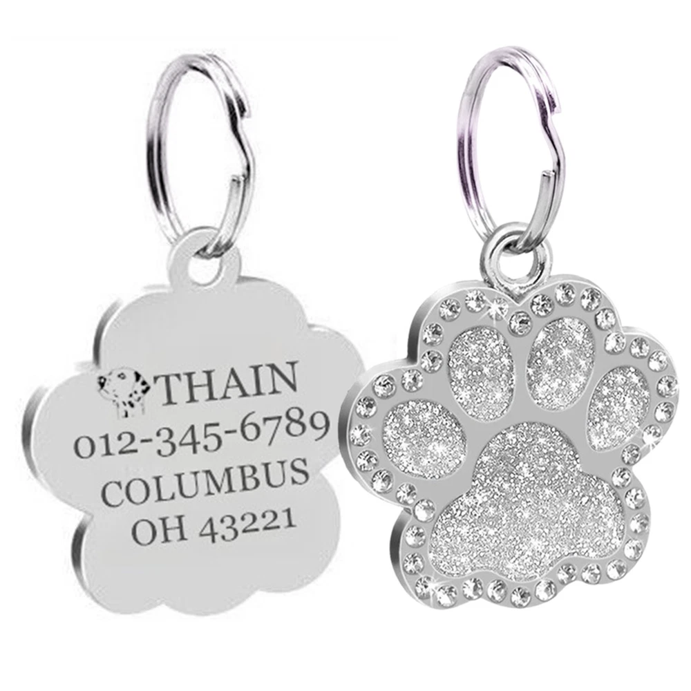 Personalized Dog Tags Bling Engraved Puppy Pet ID Name Collar Tag Paw GlitterA