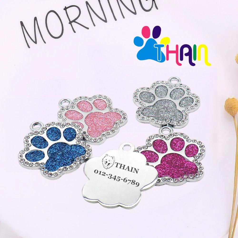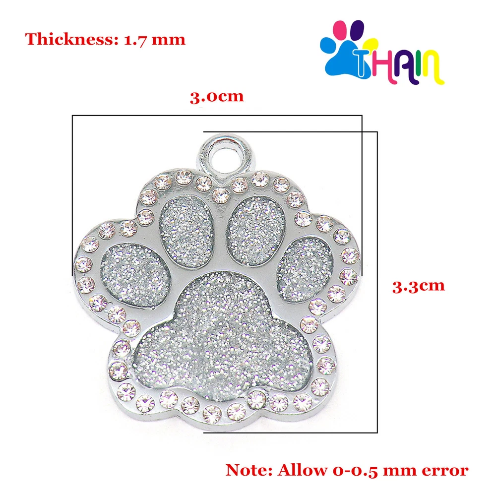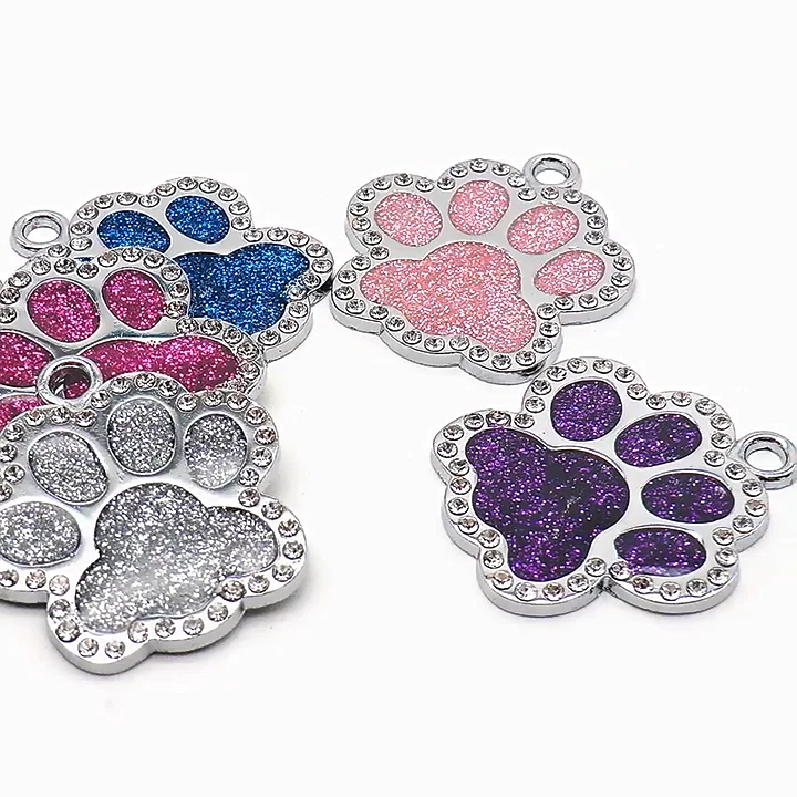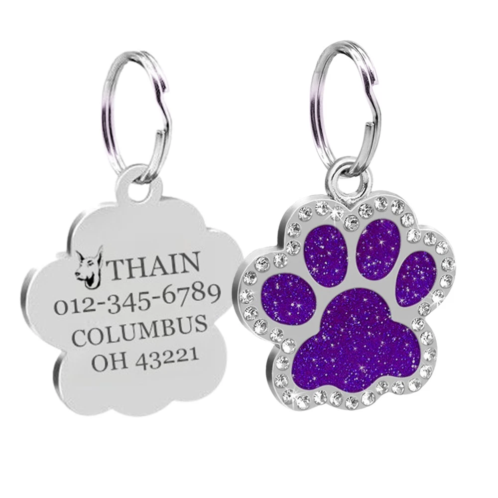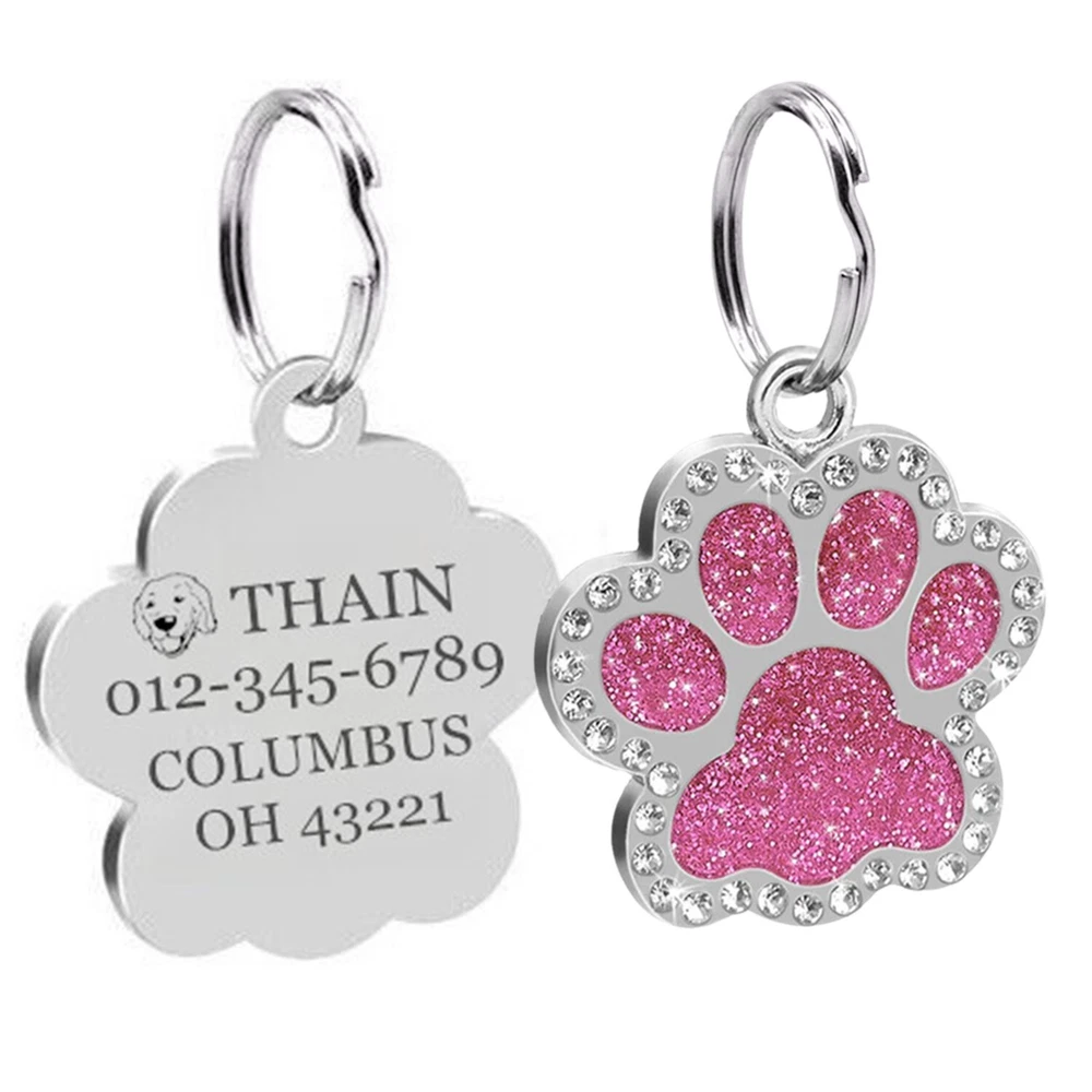 Personalized Dog Tags Bling Engraved Puppy Pet ID Name Collar Tag Paw GlitterA