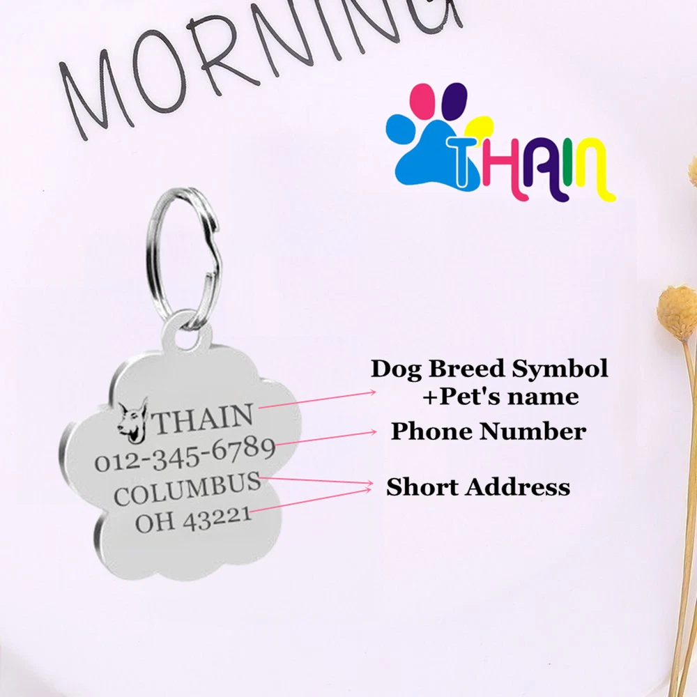 Personalize: Yes Features: Engraved Type: ID Tag Country/Region of Manufacture: China Gender: Unisex Personalized: Yes Material: Zinc Alloy Dog Breed: ALL DOGS Brand: THAIN