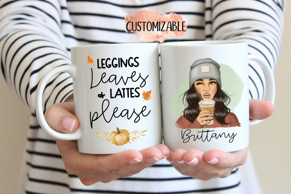 Personalized Fall Mug Leggings Leaves And Lattes Autumn Coffee Mug Fall Weather Product Details.. This high quality 11oz. ceramic white mug has a premium hard coat that provides crisp and vibrant color reproduction sure to last for years. Perfect for all hot & cold beverages. The highest quality printing possible is used. It will never fade no matter how many times you wash it. Material: 100% Ceramic. Print both sides. Dishwasher and Microwave Safe. High Gloss + Premium White Finish. Printed in the U.S.A. Personalized & Custom. We support personalized and custom mug to add custom, when placing an order, you can add notes to the "order note" in shipping address section. Also you can contact us directly via message. Shipping Info. Ready to ship in 1 to 2 business days, All products are made-to-order and proudly printed in the United States. Shipped by USPS and DHL, You will receive your order in 5-7 days. Replace & Refund. All products are defective during shipping broken, chipped will be replaced free of charge. You are not satisfied with the product, we will refund 100% money to you. If any other issues arise, please do not hesitate to message, we would be more than happy to assist you.