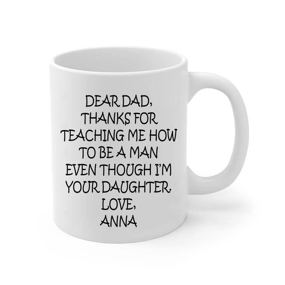 Personalized Fathers Day White Mug Gift For Dad From Daughter Dear Dad Thanks