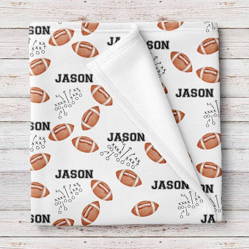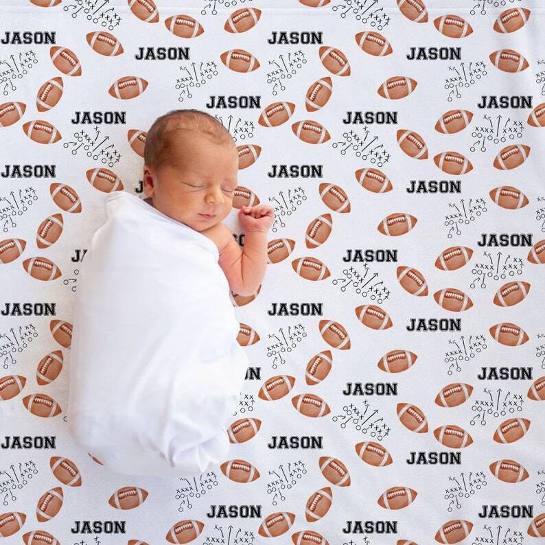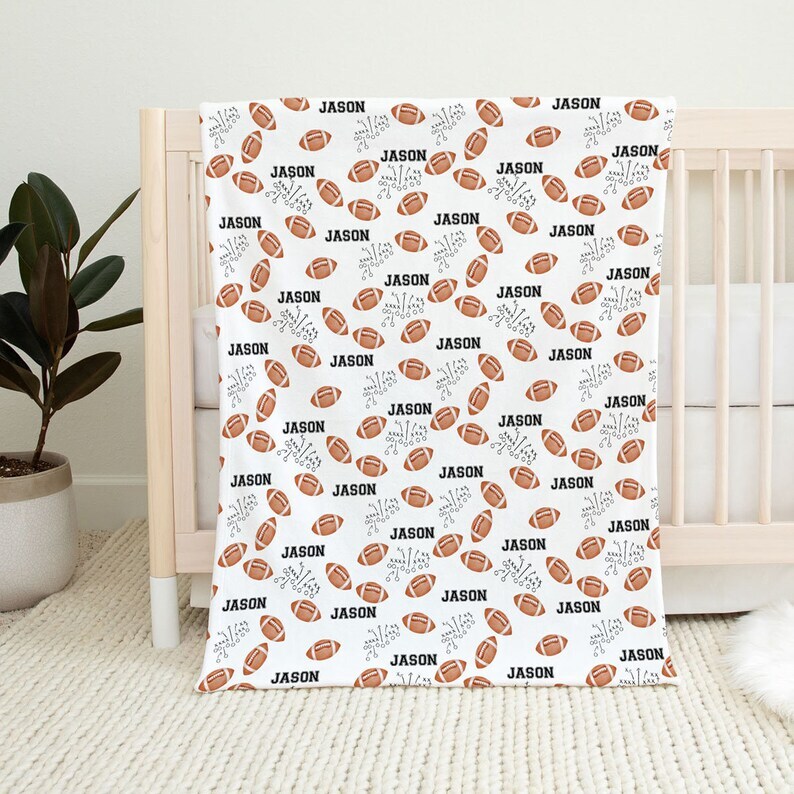 Personalized Football Baby Name Blanket printed Football Graphic soft Bedding
