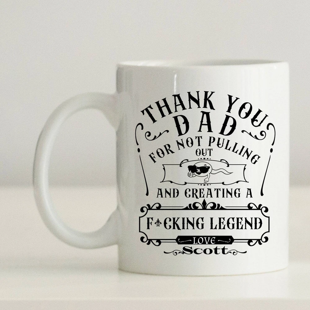 Personalized Funny Dad Coffee Mug From Son Sarcastic Dad Gift From Daughter Dad Birthday Gift From Swimming Legend Father's Day Gift Product Details.. This high quality 11oz. ceramic white mug has a premium hard coat that provides crisp and vibrant color reproduction sure to last for years. Perfect for all hot & cold beverages. The highest quality printing possible is used. It will never fade no matter how many times you wash it. Material: 100% Ceramic. Print both sides. Dishwasher and Microwave Safe. High Gloss + Premium White Finish. Printed in the U.S.A. Personalized & Custom. We support personalized and custom mug to add custom, when placing an order, you can add notes to the "order note" in shipping address section. Also you can contact us directly via message. Shipping Info. Ready to ship in 1 to 2 business days, All products are made-to-order and proudly printed in the United States. Shipped by USPS and DHL, You will receive your order in 5-7 days. Replace & Refund. All products are defective during shipping broken, chipped will be replaced free of charge. You are not satisfied with the product, we will refund 100% money to you. If any other issues arise, please do not hesitate to message, we would be more than happy to assist you.