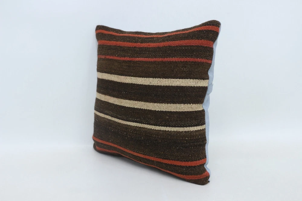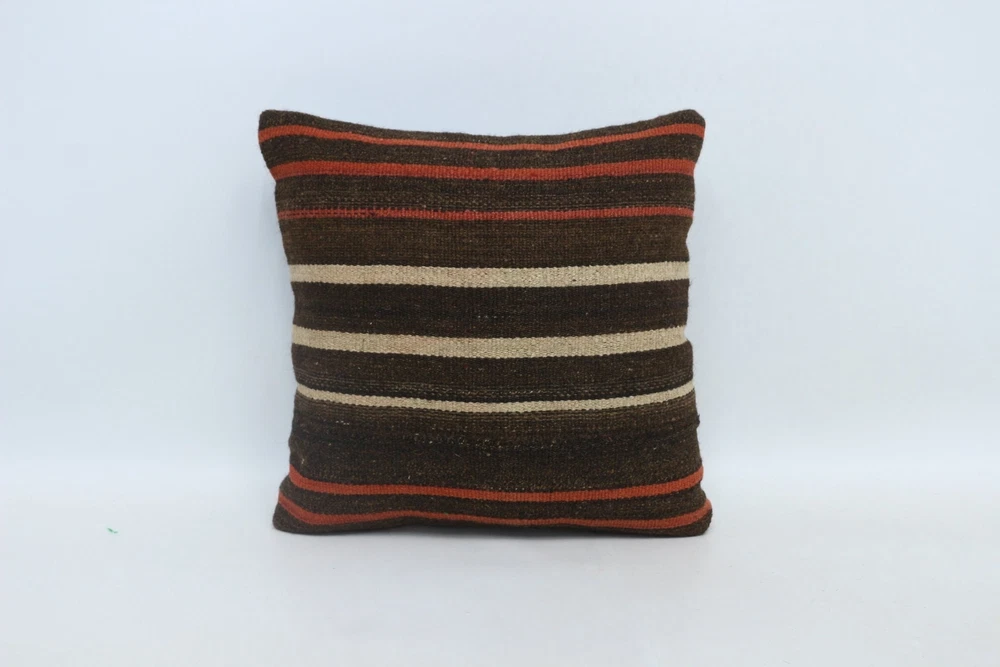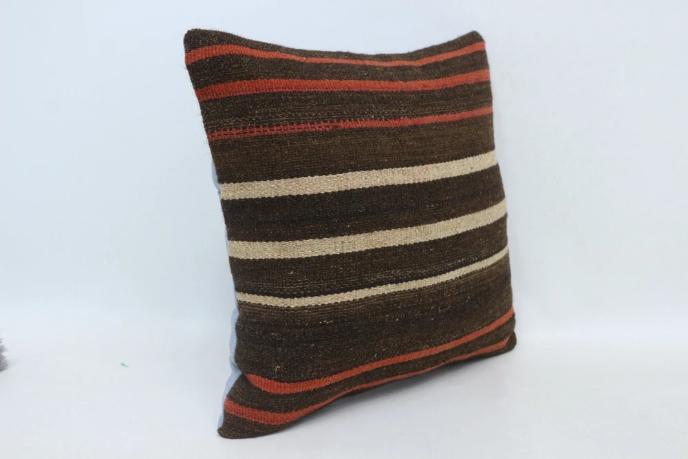 Personalized Gift, 16"x16" Brown Cushion Case, Pillow for Couch, Kilim Pillow