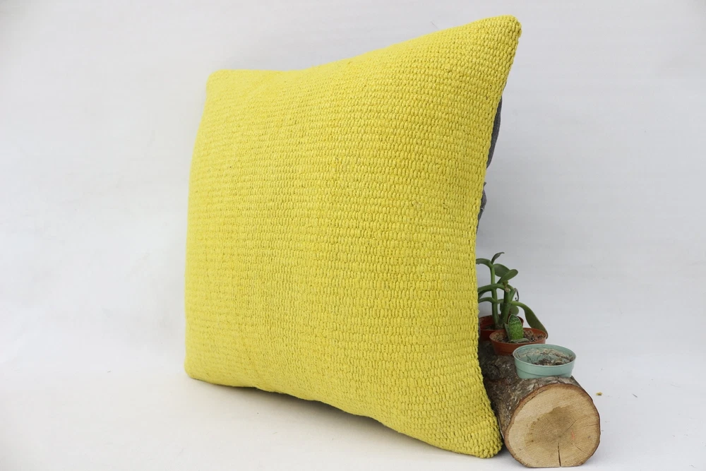 Personalized Gift, Kilim Pillow, Antique Pillows, 16"x16" Yellow Kilim Pillow