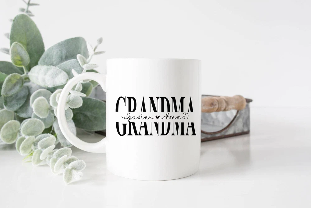 Personalized Grandma Mug With Grandkids' Names Grandmother Gift Ideas Grandma Product Details.. This high quality 11oz. ceramic white mug has a premium hard coat that provides crisp and vibrant color reproduction sure to last for years. Perfect for all hot & cold beverages. The highest quality printing possible is used. It will never fade no matter how many times you wash it. Material: 100% Ceramic. Print both sides. Dishwasher and Microwave Safe. High Gloss + Premium White Finish. Printed in the U.S.A. Personalized & Custom. We support personalized and custom mug to add custom, when placing an order, you can add notes to the "order note" in shipping address section. Also you can contact us directly via message. Shipping Info. Ready to ship in 1 to 2 business days, All products are made-to-order and proudly printed in the United States. Shipped by USPS and DHL, You will receive your order in 5-7 days. Replace & Refund. All products are defective during shipping broken, chipped will be replaced free of charge. You are not satisfied with the product, we will refund 100% money to you. If any other issues arise, please do not hesitate to message, we would be more than happy to assist you.