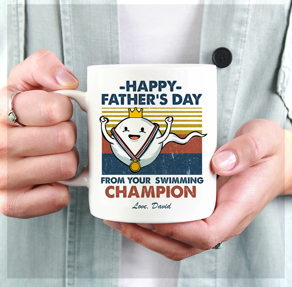 Personalized Happy Fathers Day From Swimming Champion Mug Retro Vintage Mug Product Details.. This high quality 11oz. ceramic white mug has a premium hard coat that provides crisp and vibrant color reproduction sure to last for years. Perfect for all hot & cold beverages. The highest quality printing possible is used. It will never fade no matter how many times you wash it. Material: 100% Ceramic. Print both sides. Dishwasher and Microwave Safe. High Gloss + Premium White Finish. Printed in the U.S.A. Personalized & Custom. We support personalized and custom mug to add custom, when placing an order, you can add notes to the "order note" in shipping address section. Also you can contact us directly via message. Shipping Info. Ready to ship in 1 to 2 business days, All products are made-to-order and proudly printed in the United States. Shipped by USPS and DHL, You will receive your order in 5-7 days. Replace & Refund. All products are defective during shipping broken, chipped will be replaced free of charge. You are not satisfied with the product, we will refund 100% money to you. If any other issues arise, please do not hesitate to message, we would be more than happy to assist you.