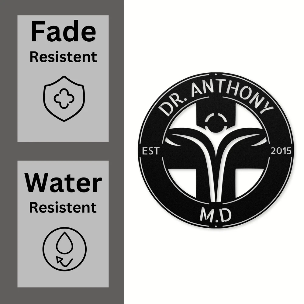 Product Description Personalized Health Care Hospital Metal Wall Art Sign Custom Doctor Logo Signs Celebrate the vital work of healthcare professionals with our Custom Health Care Metal Sign ! This sign is an ideal way to show appreciation for doctors, nurses, and medical staff, making it a thoughtful addition to any office, clinic, or home. Made from durable 16 gauge high-quality metal, this sign is designed to last. The powder-coated finish ensures that it is dust, weather, and water-resistant, making it suitable for both indoor and outdoor use. You can personalize the sign with a name, title, or any message that represents the dedication of your favorite healthcare professional. Whether you’re looking for a unique gift for a birthday, Christmas, or any special occasion, this Custom Health Care Metal Sign is a great choice. It’s perfect for decorating hospitals, medical offices, or even your home to reflect your admiration for the healthcare field. Key Features: Customizable: Personalize with a name, title, or special message. Durable Material: Made from 16 gauge high-quality metal for long-lasting use. Weather Resistant: Powder coating protects against dust, moisture, and fading. Versatile Decoration: Perfect for offices, clinics, or home spaces. Great Gift Idea: Ideal for birthdays, holidays, or as a special gesture for medical professionals. Honor the heroes of health care with the Custom Health Care Metal Sign ! Order yours today and add a special touch to any healthcare setting. Service and Color Choice Our metal signs are designed to be personalized just for you, making them the perfect addition to any space! The default color for our signs is Black , but we also offer a variety of beautiful options including Copper, Gold, White, and Silver . After placing your order, simply contact us with your preferred color choice, and we'll ensure your sign is exactly how you envision it. Let’s create something special together!