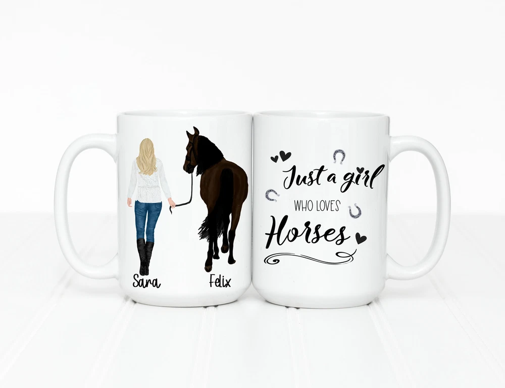 Personalized Horse Mug Personalized Gift For Her Custom Horse Mug Girlfriend Product Details.. This high quality 11oz. ceramic white mug has a premium hard coat that provides crisp and vibrant color reproduction sure to last for years. Perfect for all hot & cold beverages. The highest quality printing possible is used. It will never fade no matter how many times you wash it. Material: 100% Ceramic. Print both sides. Dishwasher and Microwave Safe. High Gloss + Premium White Finish. Printed in the U.S.A. Personalized & Custom. We support personalized and custom mug to add custom, when placing an order, you can add notes to the "order note" in shipping address section. Also you can contact us directly via message. Shipping Info. Ready to ship in 1 to 2 business days, All products are made-to-order and proudly printed in the United States. Shipped by USPS and DHL, You will receive your order in 5-7 days. Replace & Refund. All products are defective during shipping broken, chipped will be replaced free of charge. You are not satisfied with the product, we will refund 100% money to you. If any other issues arise, please do not hesitate to message, we would be more than happy to assist you.