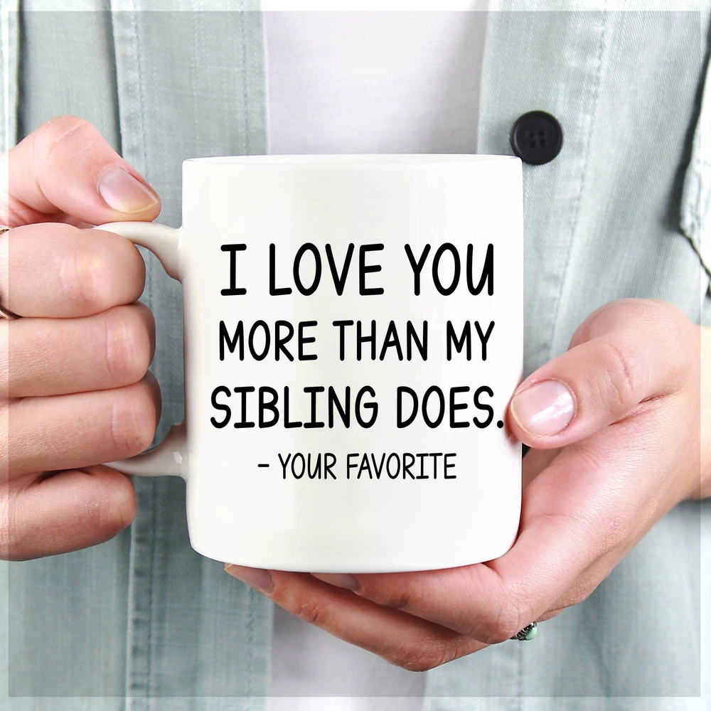 Personalized I Love You More Than My Siblings Does Coffee Mug Custom Kids Name Product Details.. This high quality 11oz. ceramic white mug has a premium hard coat that provides crisp and vibrant color reproduction sure to last for years. Perfect for all hot & cold beverages. The highest quality printing possible is used. It will never fade no matter how many times you wash it. Material: 100% Ceramic. Print both sides. Dishwasher and Microwave Safe. High Gloss + Premium White Finish. Printed in the U.S.A. Personalized & Custom. We support personalized and custom mug to add custom, when placing an order, you can add notes to the "order note" in shipping address section. Also you can contact us directly via message. Shipping Info. Ready to ship in 1 to 2 business days, All products are made-to-order and proudly printed in the United States. Shipped by USPS and DHL, You will receive your order in 5-7 days. Replace & Refund. All products are defective during shipping broken, chipped will be replaced free of charge. You are not satisfied with the product, we will refund 100% money to you. If any other issues arise, please do not hesitate to message, we would be more than happy to assist you.