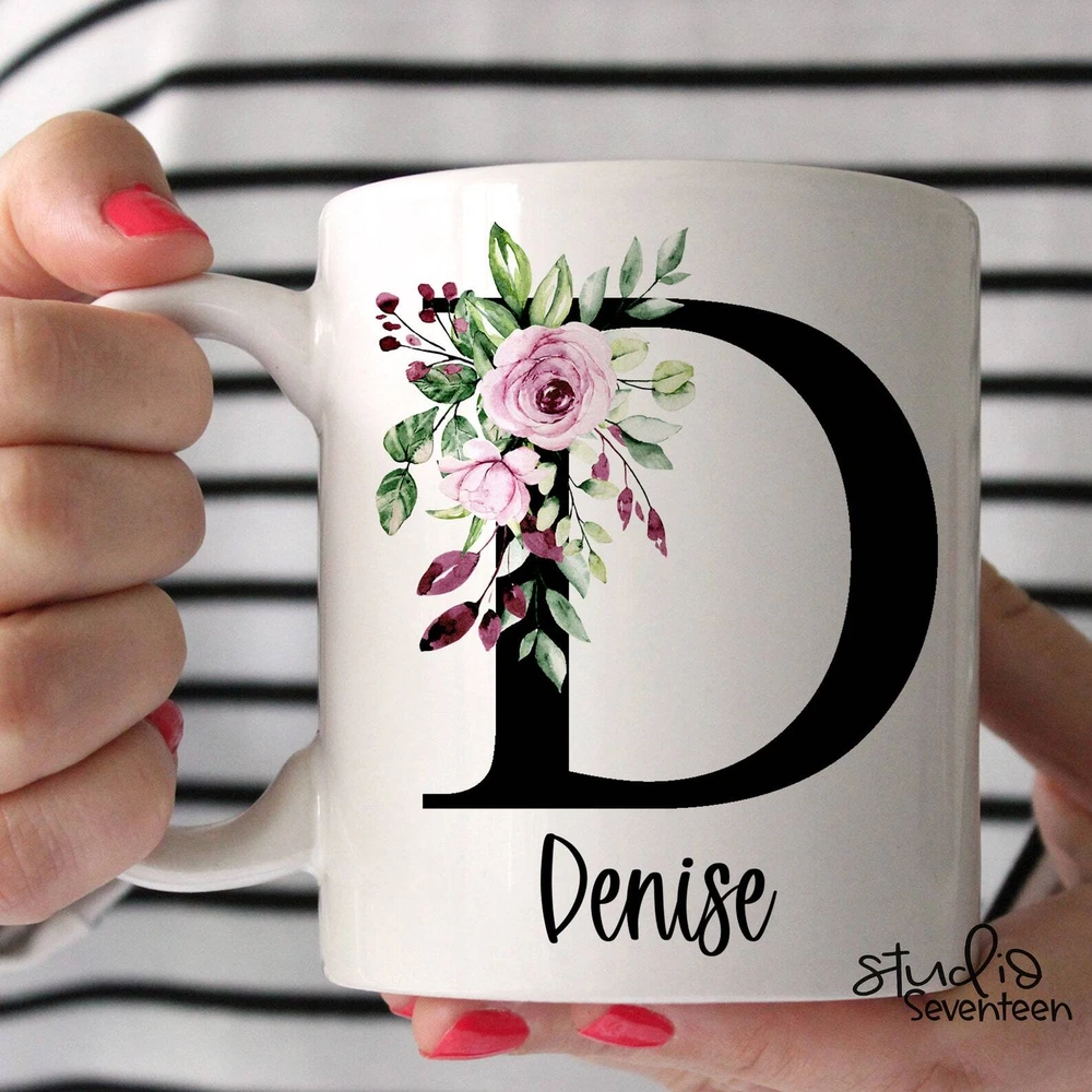 Personalized Initial Mug Floral Letter Name Mug Custom Watercolor Floral Mug Product Details.. This high quality 11oz. ceramic white mug has a premium hard coat that provides crisp and vibrant color reproduction sure to last for years. Perfect for all hot & cold beverages. The highest quality printing possible is used. It will never fade no matter how many times you wash it. Material: 100% Ceramic. Print both sides. Dishwasher and Microwave Safe. High Gloss + Premium White Finish. Printed in the U.S.A. Personalized & Custom. We support personalized and custom mug to add custom, when placing an order, you can add notes to the "order note" in shipping address section. Also you can contact us directly via message. Shipping Info. Ready to ship in 1 to 2 business days, All products are made-to-order and proudly printed in the United States. Shipped by USPS and DHL, You will receive your order in 5-7 days. Replace & Refund. All products are defective during shipping broken, chipped will be replaced free of charge. You are not satisfied with the product, we will refund 100% money to you. If any other issues arise, please do not hesitate to message, we would be more than happy to assist you.