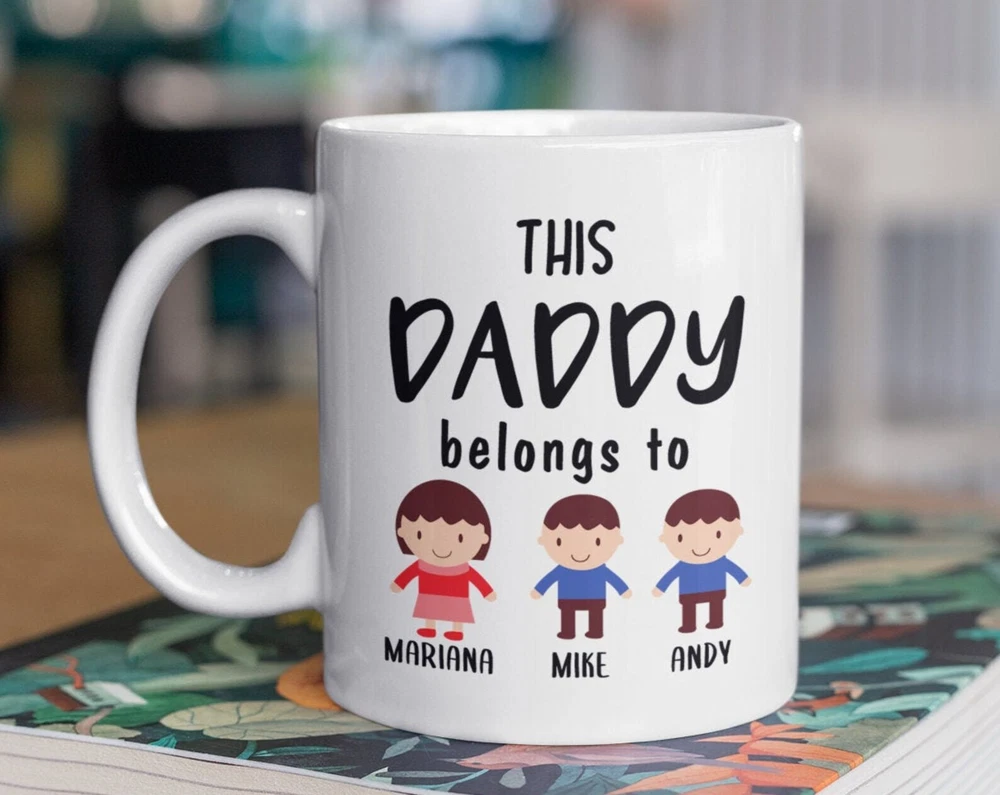 Personalized Kids Name Mug For Dad Daddy Mug Papa Mug Dad Birthday Mug Custom Dad Mug Dad Cup Dad Mug From Kids Fathers Day Mug Product Details.. This high quality 11oz. ceramic white mug has a premium hard coat that provides crisp and vibrant color reproduction sure to last for years. Perfect for all hot & cold beverages. The highest quality printing possible is used. It will never fade no matter how many times you wash it. Material: 100% Ceramic. Print both sides. Dishwasher and Microwave Safe. High Gloss + Premium White Finish. Printed in the U.S.A. Personalized & Custom. We support personalized and custom mug to add custom, when placing an order, you can add notes to the "order note" in shipping address section. Also you can contact us directly via message. Shipping Info. Ready to ship in 1 to 2 business days, All products are made-to-order and proudly printed in the United States. Shipped by USPS and DHL, You will receive your order in 5-7 days. Replace & Refund. All products are defective during shipping broken, chipped will be replaced free of charge. You are not satisfied with the product, we will refund 100% money to you. If any other issues arise, please do not hesitate to message, we would be more than happy to assist you.