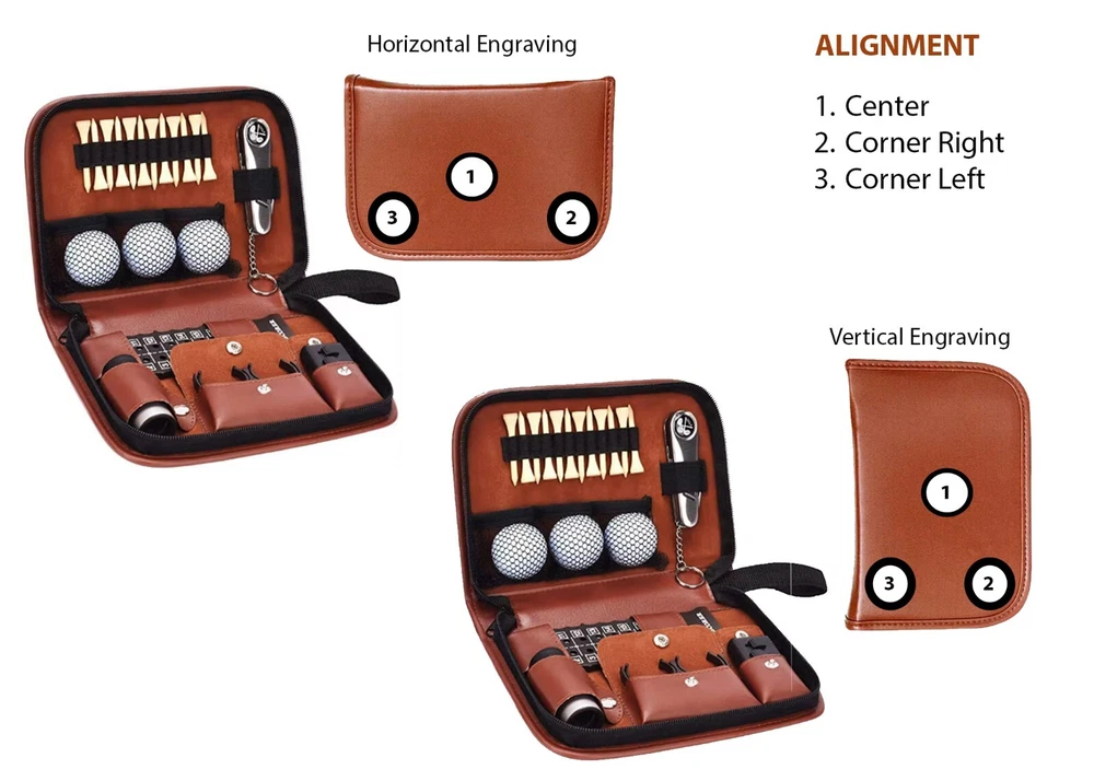 Elevate your golfing experience with this luxurious leather golf accessory set. Meticulously crafted, this comprehensive collection includes a divot tool, knife, wrench, ball marker, brush, keychain, score pen, golf balls, range finder, golf tees, and more. Laser engraved with precision, this set is the ultimate gift for golf enthusiasts, both men and women. Personalize it to make it a truly unique and thoughtful present. With its premium leather construction and attention to detail, this set will accompany you on the greens for years to come, ensuring you have all the essential tools at your fingertips. Elevate your game in style with this remarkable golf accessory set. Premium PU Leather Golf Accessory Set: Includes divot tool, knife, wrench, ball marker, brush, keychain, score pen, golf balls, range finder, golf tees, and more. Personalized Laser Engraving: Customize your set with a laser-engraved name or message for a unique and thoughtful gift. Versatile Design: Suitable for both men and women golfers, this set offers a stylish and practical accessory collection. Compact and Portable: Easily carry all your golf essentials in one convenient set for on-the-go convenience. Durable Construction: Crafted from high-quality leather materials, ensuring long-lasting use and reliable performance on the course.