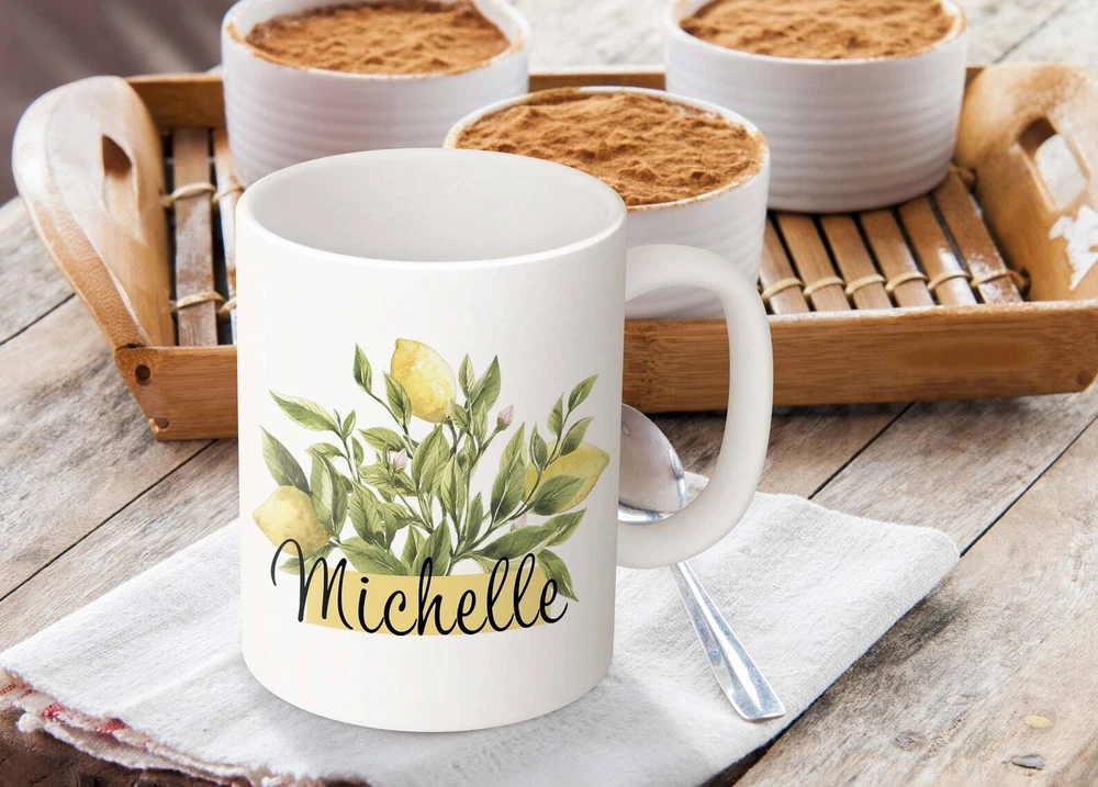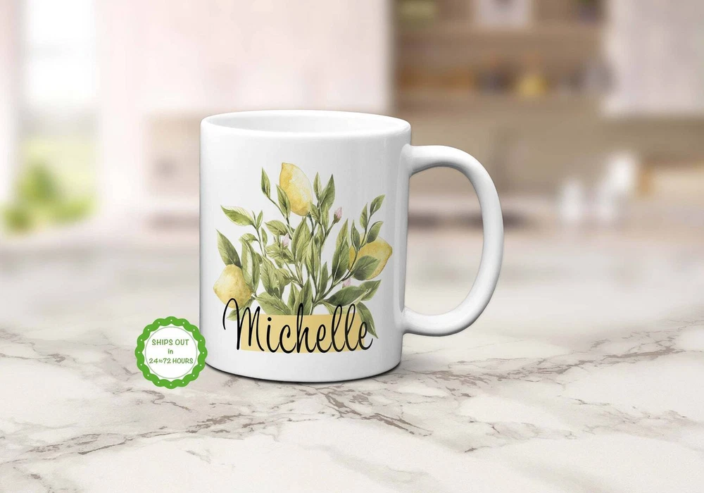 Personalized Lemon Mug Bridal Personalized Mug Lemon Yellow Mug Personalized Product Details.. This high quality 11oz. ceramic white mug has a premium hard coat that provides crisp and vibrant color reproduction sure to last for years. Perfect for all hot & cold beverages. The highest quality printing possible is used. It will never fade no matter how many times you wash it. Material: 100% Ceramic. Print both sides. Dishwasher and Microwave Safe. High Gloss + Premium White Finish. Printed in the U.S.A. Personalized & Custom. We support personalized and custom mug to add custom, when placing an order, you can add notes to the "order note" in shipping address section. Also you can contact us directly via message. Shipping Info. Ready to ship in 1 to 2 business days, All products are made-to-order and proudly printed in the United States. Shipped by USPS and DHL, You will receive your order in 5-7 days. Replace & Refund. All products are defective during shipping broken, chipped will be replaced free of charge. You are not satisfied with the product, we will refund 100% money to you. If any other issues arise, please do not hesitate to message, we would be more than happy to assist you.