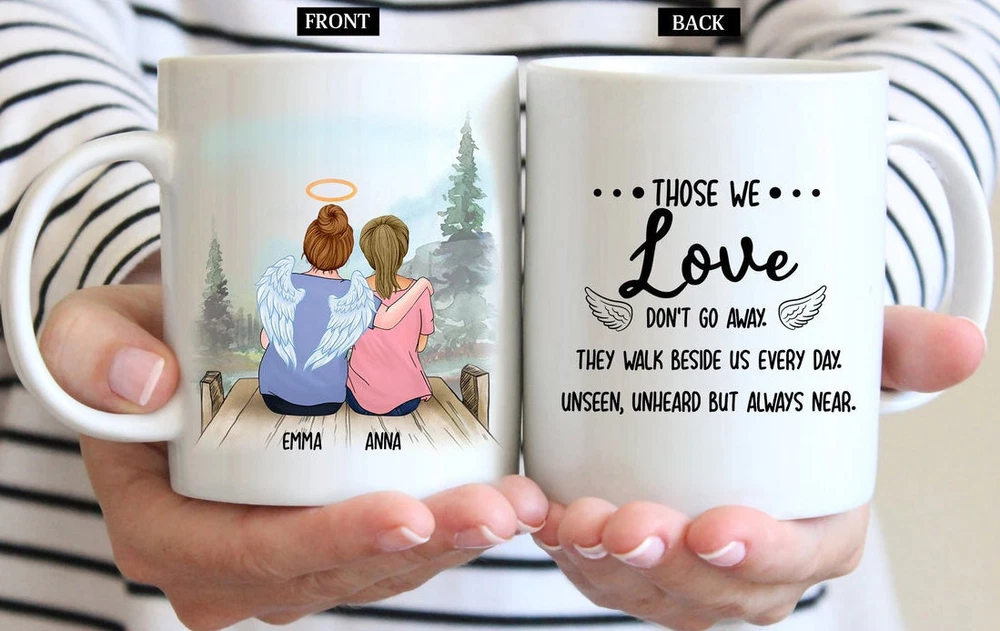Personalized Loss Of Mother Coffee Mug Mother's Day Gift Those We Love Don't Go Product Details.. This high quality 11oz. ceramic white mug has a premium hard coat that provides crisp and vibrant color reproduction sure to last for years. Perfect for all hot & cold beverages. The highest quality printing possible is used. It will never fade no matter how many times you wash it. Material: 100% Ceramic. Print both sides. Dishwasher and Microwave Safe. High Gloss + Premium White Finish. Printed in the U.S.A. Personalized & Custom. We support personalized and custom mug to add custom, when placing an order, you can add notes to the "order note" in shipping address section. Also you can contact us directly via message. Shipping Info. Ready to ship in 1 to 2 business days, All products are made-to-order and proudly printed in the United States. Shipped by USPS and DHL, You will receive your order in 5-7 days. Replace & Refund. All products are defective during shipping broken, chipped will be replaced free of charge. You are not satisfied with the product, we will refund 100% money to you. If any other issues arise, please do not hesitate to message, we would be more than happy to assist you.