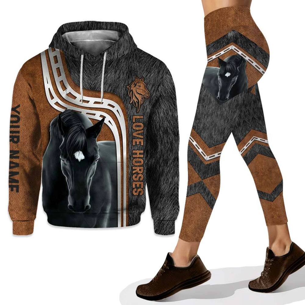 Personalized Love Horses Hoodie and Leggings With 3D Pattern Print