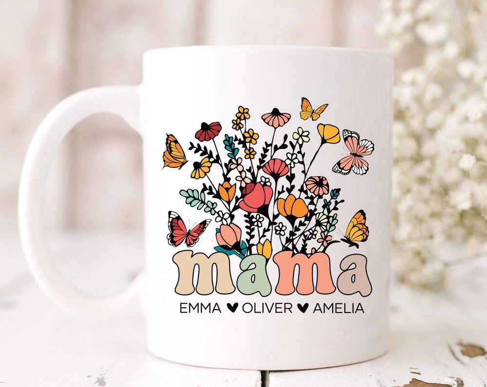 Personalized Mama Mug With Kids Names Wildflowers Mama Mug Mama Coffee Mug Custom Gift For Mom Gifts Mothers Day Gift For Mom Birthday Product Details.. This high quality 11oz. ceramic white mug has a premium hard coat that provides crisp and vibrant color reproduction sure to last for years. Perfect for all hot & cold beverages. The highest quality printing possible is used. It will never fade no matter how many times you wash it. Material: 100% Ceramic. Print both sides. Dishwasher and Microwave Safe. High Gloss + Premium White Finish. Printed in the U.S.A. Personalized & Custom. We support personalized and custom mug to add custom, when placing an order, you can add notes to the "order note" in shipping address section. Also you can contact us directly via message. Shipping Info. Ready to ship in 1 to 2 business days, All products are made-to-order and proudly printed in the United States. Shipped by USPS and DHL, You will receive your order in 5-7 days. Replace & Refund. All products are defective during shipping broken, chipped will be replaced free of charge. You are not satisfied with the product, we will refund 100% money to you. If any other issues arise, please do not hesitate to message, we would be more than happy to assist you.