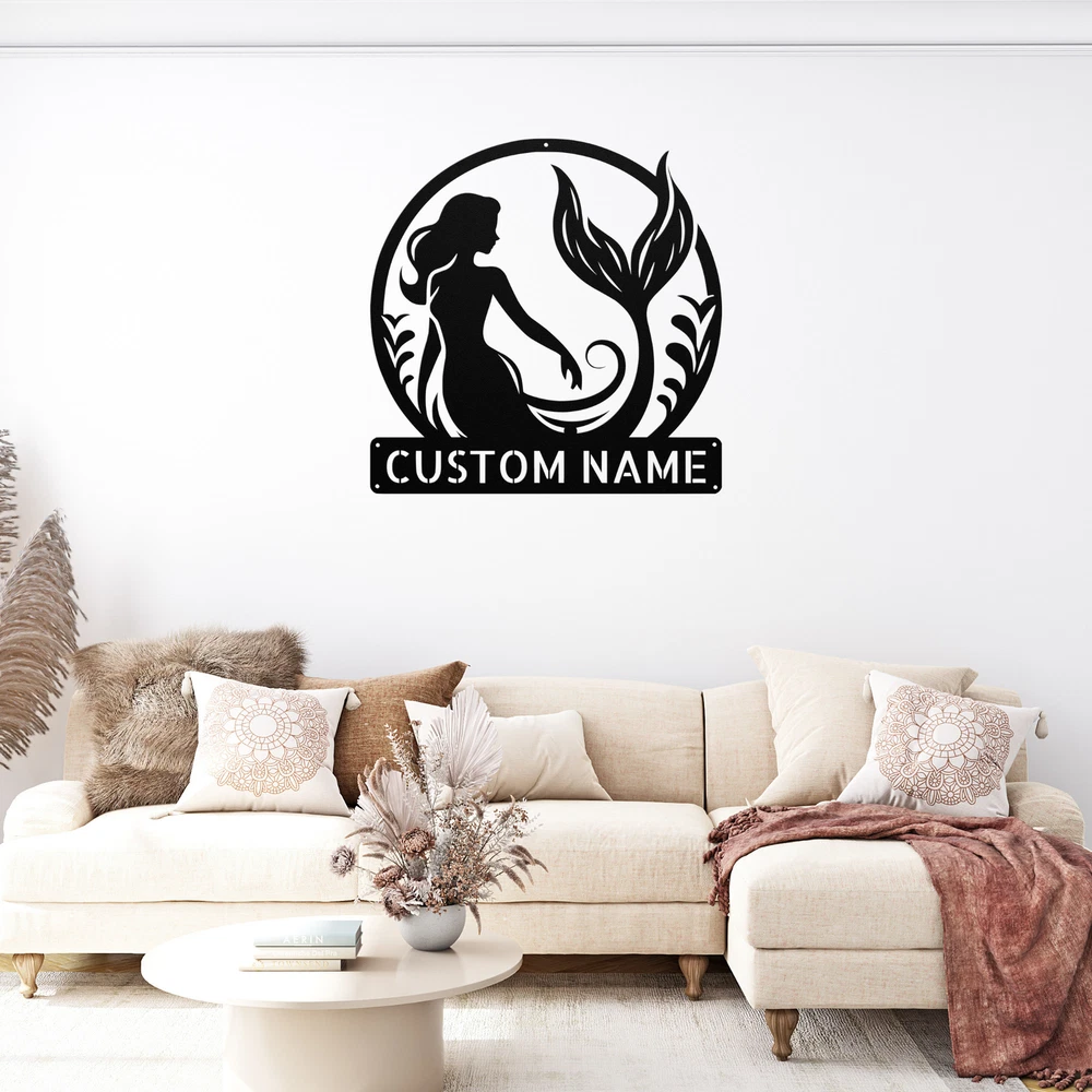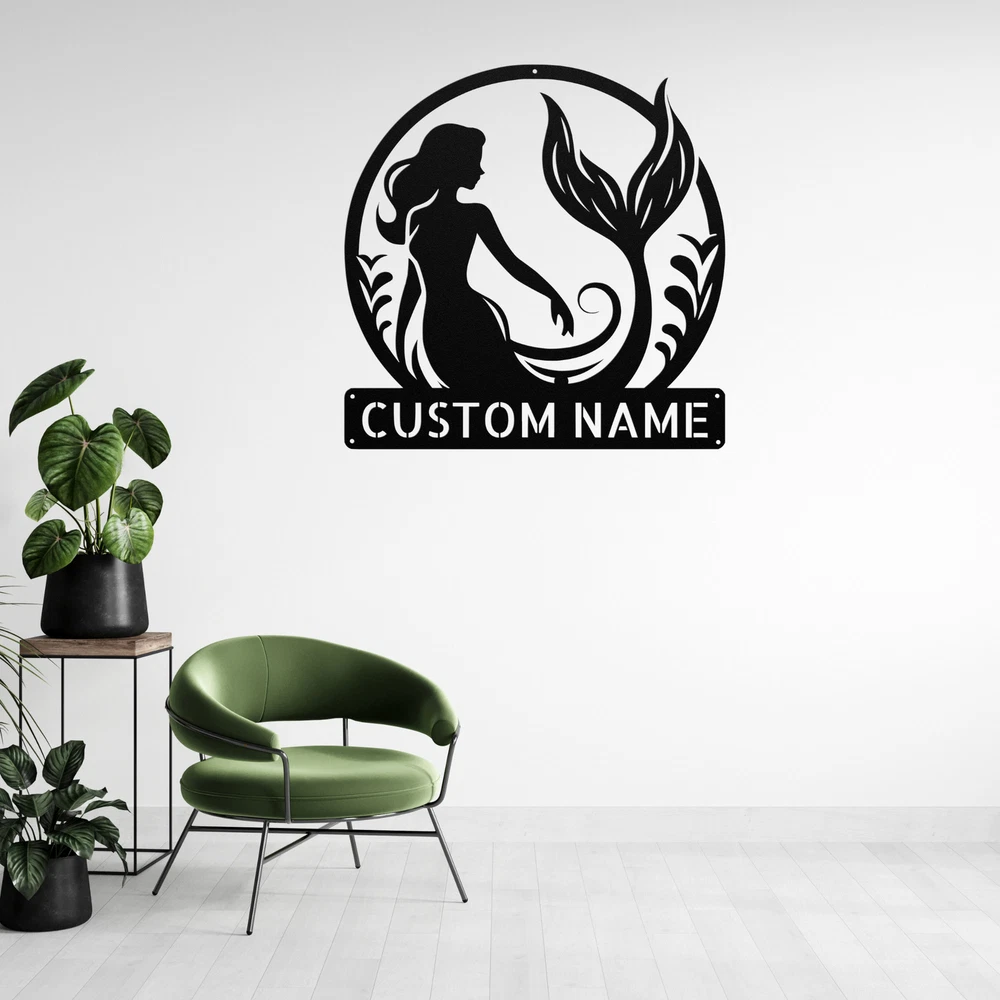 Product Description Personalized Mermaid Sign Custom Nautical Decor Gift for Ocean Lovers Home Decor Dive into a world of charm with the Personalized Mermaid Sign . This delightful sign is perfect for anyone who loves the ocean, making it an enchanting addition to your home or office decor. Crafted from 16 gauge high-quality metal , this sign is built to last. With a powder coating , it is dust, weather, and water-resistant, ensuring it looks beautiful both indoors and outdoors. Key features include: Customizable Design: Personalize with a name or special message for a unique touch. Durable Construction: Made from sturdy metal for long-lasting enjoyment. Perfect Gift Idea: Ideal for Christmas, birthdays, or any special occasion. Charming Decor: Great for beach houses, nurseries, or any room needing a whimsical touch. Transform your space with the Personalized Mermaid Sign . It’s not just a decoration; it’s a celebration of your love for the sea! Service and Color Choice Our metal signs are designed to be personalized just for you, making them the perfect addition to any space! The default color for our signs is Black , but we also offer a variety of beautiful options including Copper, Gold, White, and Silver . After placing your order, simply contact us with your preferred color choice, and we'll ensure your sign is exactly how you envision it. Let’s create something special together!
