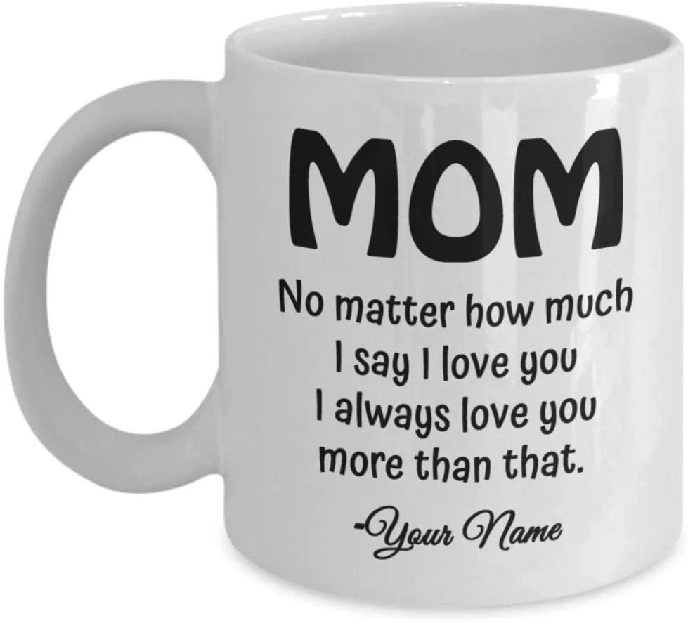 Personalized Mom Mug No Matter How Much I Love You Mother's Day Gifts Idea Gifts Product Details.. This high quality 11oz. ceramic white mug has a premium hard coat that provides crisp and vibrant color reproduction sure to last for years. Perfect for all hot & cold beverages. The highest quality printing possible is used. It will never fade no matter how many times you wash it. Material: 100% Ceramic. Print both sides. Dishwasher and Microwave Safe. High Gloss + Premium White Finish. Printed in the U.S.A. Personalized & Custom. We support personalized and custom mug to add custom, when placing an order, you can add notes to the "order note" in shipping address section. Also you can contact us directly via message. Shipping Info. Ready to ship in 1 to 2 business days, All products are made-to-order and proudly printed in the United States. Shipped by USPS and DHL, You will receive your order in 5-7 days. Replace & Refund. All products are defective during shipping broken, chipped will be replaced free of charge. You are not satisfied with the product, we will refund 100% money to you. If any other issues arise, please do not hesitate to message, we would be more than happy to assist you.