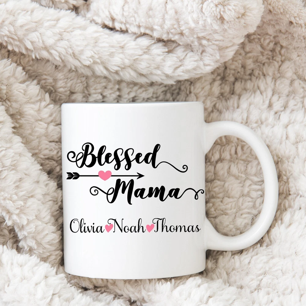 Personalized Mothers Day Mug Mothers Day Gift Mom Gift Blessed Mama Mug Mother Product Details.. This high quality 11oz. ceramic white mug has a premium hard coat that provides crisp and vibrant color reproduction sure to last for years. Perfect for all hot & cold beverages. The highest quality printing possible is used. It will never fade no matter how many times you wash it. Material: 100% Ceramic. Print both sides. Dishwasher and Microwave Safe. High Gloss + Premium White Finish. Printed in the U.S.A. Personalized & Custom. We support personalized and custom mug to add custom, when placing an order, you can add notes to the "order note" in shipping address section. Also you can contact us directly via message. Shipping Info. Ready to ship in 1 to 2 business days, All products are made-to-order and proudly printed in the United States. Shipped by USPS and DHL, You will receive your order in 5-7 days. Replace & Refund. All products are defective during shipping broken, chipped will be replaced free of charge. You are not satisfied with the product, we will refund 100% money to you. If any other issues arise, please do not hesitate to message, we would be more than happy to assist you.