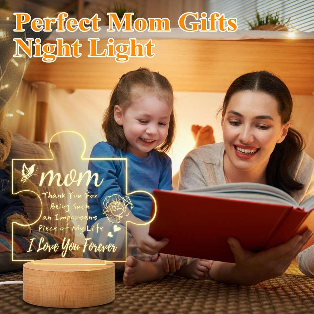 Mothers Day Gifts for Mom from Daughter Son, Engraved Acrylic Night Light Birthday Gifts for Mom, Christmas Presents Thanksgiving Gifts for Mom, Wooden Base PRODUCT DESCRIPTION PRODUCT FEATURES 💝【Gifts for Mom】: Choose the most unique engraved acrylic night light gifts for mom on christmas, mothers Day or birthday. 🎀 【Gifts for Mom from Daughter Son】: This engraved acrylic night light is a great mother's day gifts from daughter son is not only has warm light and words, but it is also a beautiful home decor for the living room, bedroom, baby room, etc. The gentle light will protect the eyes. Even if mom wakes up in the middle night, it will not disturb her sleep at night, creating the ideal sleep environment for your mom. 💕【Mom Gifts Apply for Occasions】: A perfect mother gift with this unique acrylic night light lamp. Create a surprise for moms on mothers Day gifts, birthday gifts, Thanksgiving gifts, Christmas gifts, Anniversary gifts, Valentine's Day gifts, etc. These lovely mom night light gifts will make mom smile and feel warm in her heart. Just push the switch button, and the engraved night light will keep company with her all night, just you're always by her side. 💟【Acrylic Night Light Birthday Gifts for Mom】: This engraved acrylic night light mom gifts is made of high-quality acrylic and wooden base. The engraved words on the plate are clear and do not easily fade. The light is bright. The wooden base is also not easy to break. It is powered by a USB cable, just need to plug it into a PC, mobile power device, etc. Very easy and safe to use. 💟【Unique Mom Gifts Product Support】: Mothers Day Gifts engraved acrylic night light for mom Perfect size for the table home decor. The engraved acrylic night light birthday Mother's Day gifts will be packaged in an exquisite box. If you have any questions about this mom gifts night light, please feel free to contact us. 🚚 SHIPPING We offer fast and reliable shipping. Your order will be processed within 1-2 business days. International shipping is available to most countries. All items are securely packaged to ensure safe delivery. 🔄 RETURNS If you are not satisfied with your purchase, you can return it within 30 days for a full refund. Refunds will be processed to your original method of payment. Items must be returned in their original condition and packaging. 💳 PAYMENT We accept payment via PayPal, credit cards, and other payment methods supported by eBay. Please ensure your payment method is correct and updated to avoid any delays in processing your order. ⭐ FEEDBACK We value your feedback. If you are happy with your purchase, please leave us a positive review. 📞 CONTACT US If you have any questions or need further assistance, please feel free to contact us through eBay messages.