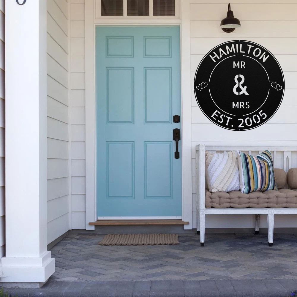 Product Description Personalized Mr and Mrs Metal Sign Custom Wedding Decor Perfect Gift for Couples Celebrate love and unity with our Personalized Mr and Mrs Metal Sign ! This elegant sign is perfect for newlyweds or as a beautiful addition to your own home decor. Made from 16 gauge high-quality metal , this sign is designed to last. With a powder coating , it is dust, weather, and water-resistant, making it ideal for both indoor and outdoor display. Key features include: Customizable Design: Personalize your sign with names or initials for a unique touch. Durable Material: Crafted from sturdy metal to ensure lasting beauty. Ideal Gift: Perfect for weddings, anniversaries, Christmas, or any special occasion. Versatile Decor: A lovely addition to any home, office, or wedding venue. Make your space feel special with the Personalized Mr and Mrs Metal Sign ! Order yours today and celebrate your love story in style! Service and Color Choice Our metal signs are designed to be personalized just for you, making them the perfect addition to any space! The default color for our signs is Black , but we also offer a variety of beautiful options including Copper, Gold, White, and Silver . After placing your order, simply contact us with your preferred color choice, and we'll ensure your sign is exactly how you envision it. Let’s create something special together!