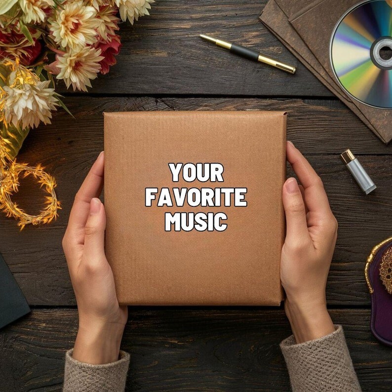Descripción para eBay: Give the gift of music with a personalized music CD , featuring your favorite tracks and a timeless vinyl-style design . Packaged in a Kraft paper sleeve , this custom CD is the perfect way to celebrate special occasions like Valentine’s Day, birthdays, or Father’s Day. Why Choose This Gift? • Holds up to 80 minutes of music, perfect for creating a meaningful playlist. • The CD has a classic black vinyl look , adding a touch of nostalgia. • Comes in a minimalist Kraft paper sleeve, ideal for eco-friendly gifting. How to Order: 1. Send Us Your Playlist: Provide a link to your streaming playlist or share a written list of songs. 2. Choose Your Format: Select between a CD or USB . 3. Leave the Rest to Us: We’ll carefully craft your personalized music CD and package it for delivery. Important Notes: • This product does not include photo or artwork personalization. • The Kraft sleeve gives your gift a simple yet stylish presentation. Perfect For: • Valentine’s Day ❤️ • Birthdays 🎁 • Father’s Day 🎵 • Special gifts for boyfriends, husbands, or loved ones. Make your moments unforgettable with this unique personalized music CD . Order now and surprise someone special with the gift of music!