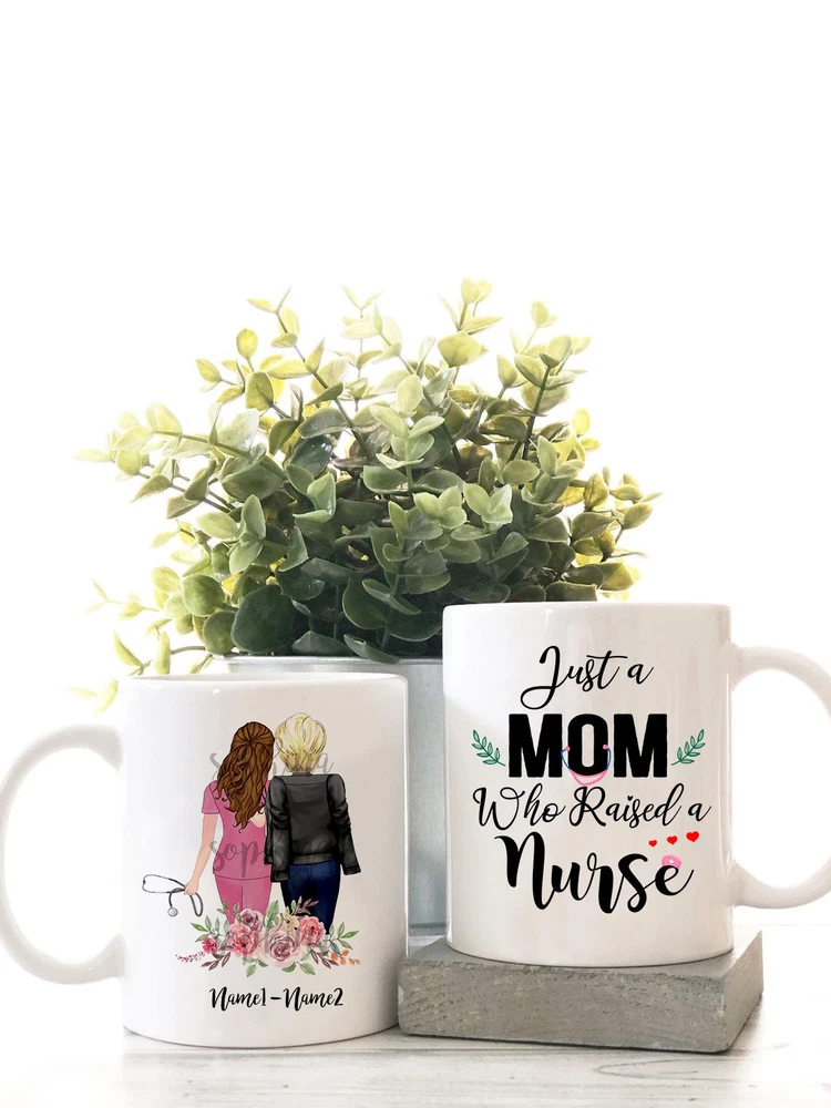 Personalized Nurse Mom Gift Mug For Mother Just A Mom Who Raised A Nurse Happy Product Details.. This high quality 11oz. ceramic white mug has a premium hard coat that provides crisp and vibrant color reproduction sure to last for years. Perfect for all hot & cold beverages. The highest quality printing possible is used. It will never fade no matter how many times you wash it. Material: 100% Ceramic. Print both sides. Dishwasher and Microwave Safe. High Gloss + Premium White Finish. Printed in the U.S.A. Personalized & Custom. We support personalized and custom mug to add custom, when placing an order, you can add notes to the "order note" in shipping address section. Also you can contact us directly via message. Shipping Info. Ready to ship in 1 to 2 business days, All products are made-to-order and proudly printed in the United States. Shipped by USPS and DHL, You will receive your order in 5-7 days. Replace & Refund. All products are defective during shipping broken, chipped will be replaced free of charge. You are not satisfied with the product, we will refund 100% money to you. If any other issues arise, please do not hesitate to message, we would be more than happy to assist you.