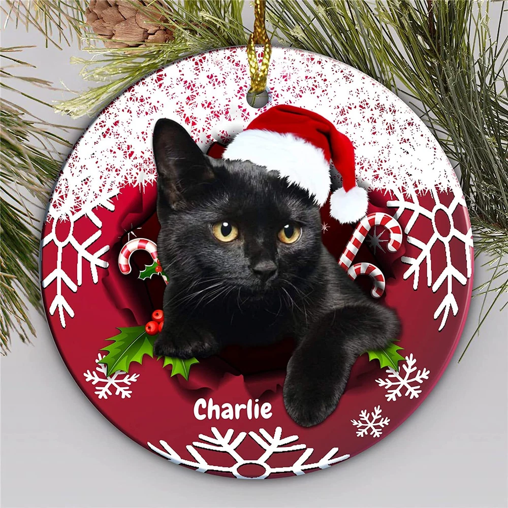 Personalized Ornament, Black Cat Christmas Ornament, Cat Lovers Gift, Christmas Ornament, Personalised Black Cat 2023 Christmas Ornament, Merry Xmas Decorations, Ornament Double Side Printed If you need to buy more, please inbox us We have two material options (Ceramic & MDF), please read the product description as below to choose your favorite options. MDF Ornaments 1-sided design. Print type: Sublimation printing. Crafted from durable MDF with a high-gloss plastic finish so your designs last a lifetime. Shapes: Round, star, heart and oval . Product Dimensions: Circle & Heart, 2.75” tall; Oval & Star, 3.25” tall. Ships with a festive gold cord for easy hanging. CERAMIC Ornaments 125" (3mm), 2.75" height (circle), thick high-quality porcelain One-sided print Hole for the hanging string Gold-toned string included Available in 4 shapes - Snowflake, Star, Heart and Circle The height of the hole can slightly deviate Shipping, Return and Refund Policy On average, merchandise is produced and shipped from our facility 2-4 business days after purchase. Standard Shipping: 5-7 working days for USA. Please contact us if you have any dissatisfaction with the item you buy so that we give you the solution. It is easier for us to handle your issue if you send us the proof like an image. We can replace another within 30 days without fee if the item is defective, damaged, or an error is made on our end.