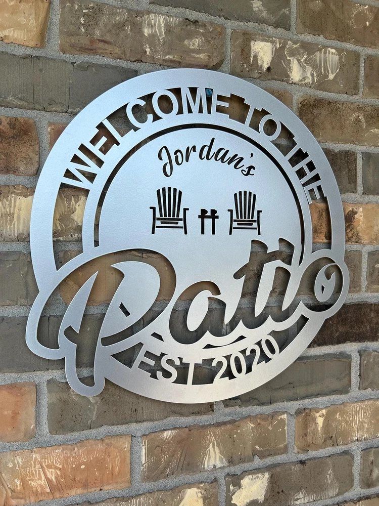 Transform your patio, deck, or porch into a personalized retreat with our Custom Patio Sign π‘β¨. Crafted from premium USA-made Cold Rolled 14 gauge Steel, this sign is CNC laser cut for precise detailing and durability. To ensure longevity, each piece is powder-coated, offering a beautiful finish that withstands the elements πͺπ¨. We offer the following customizations on this sign in addition to your name: "WELCOME TO" or "Welcome" and "EST" or "SINCE" for a truly unique touch β¨. Whether you're sprucing up your outdoor space or searching for the perfect gift, this personalized metal wall art is a stunning choice π. Each sign is measured at the widest part, ensuring the perfect fit for your space. Enhance your home decor with a touch of custom craftsmanship! π οΈ If you don't specify a change, we will default to "WELCOME TO THE" and "EST" Materials: Metal, Steel