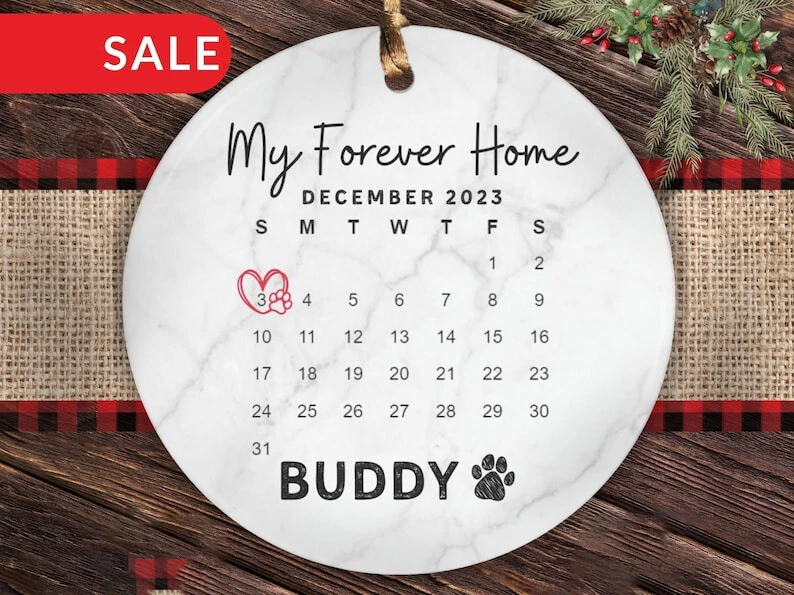 Personalized Pet Adoption Ornament, Custom Dog Cat Name Adoption Date Christmas Ornament Adopted Pet Dog Cat First Christmas Ornament Gifts If you need to buy more, please inbox us We have two material options (Ceramic & MDF), please read the product description as below to choose your favorite options. MDF Ornaments 1-sided design. Print type: Sublimation printing. Crafted from durable MDF with a high-gloss plastic finish so your designs last a lifetime. Shapes: Round, star, heart and oval . Product Dimensions: Circle & Heart, 2.75” tall; Oval & Star, 3.25” tall. Ships with a festive gold cord for easy hanging. CERAMIC Ornaments 125" (3mm), 2.75" height (circle), thick high-quality porcelain One-sided print Hole for the hanging string Gold-toned string included Available in 4 shapes - Snowflake, Star, Heart and Circle The height of the hole can slightly deviate Shipping, Return and Refund Policy On average, merchandise is produced and shipped from our facility 2-4 business days after purchase. Standard Shipping: 5-7 working days for USA. Please contact us if you have any dissatisfaction with the item you buy so that we give you the solution. It is easier for us to handle your issue if you send us the proof like an image. We can replace another within 30 days without fee if the item is defective, damaged, or an error is made on our end.