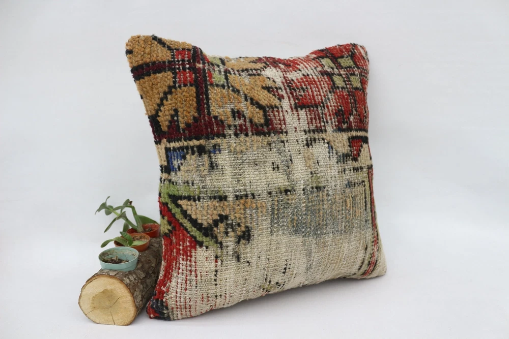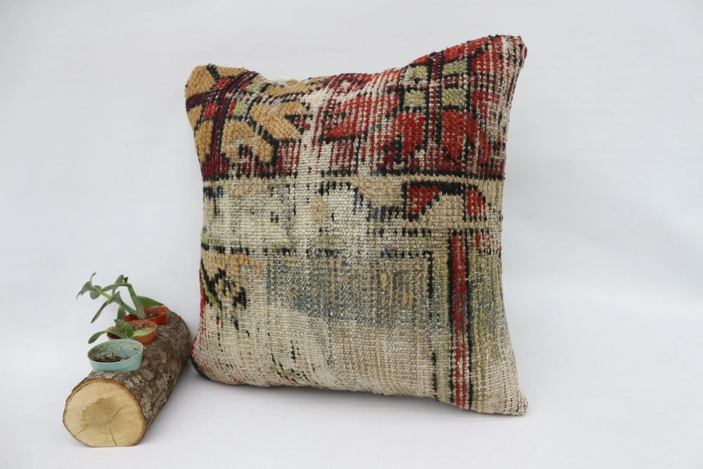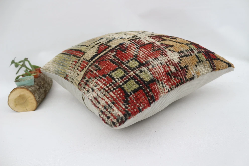 Kilim Pillow Details: All of my beautiful pillow covers or cushion cases are designed and made by me. I am making my throw pillow covers from handmade vintage rugs, Turkish rugs. Therefore, each of my vintage kilim pillowcase is one of kind. These cushions covers are piece of an art. The size of this pillow is 16 x 16 inches or 40 x 40 cm. The front side of this decorative pillow cover, cushion cover is wool on wool vintage kilim rug. The backside of this throw is high quality cotton fabric with a high quality zipper. This listing has 2 option for this handmade pillow. You can choose with insert or without insert. The listing photos is with insert in the pillowcase which is just for demonstration purpose. All of my vintage Turkish rugs have been professionally washed before I cut them as pillow case or cushion case so these kilim covers are 100 posent clean and ready to use. Due to the age and handmade nature of these vintage rugs, there might be imperfections and flaws that are not considered defects. This is a piece of a handmade vintage rug with minor signs of wear consistent with age and use that give it an antique look. You can see the condition of the rug pillow clearly in the detailed photos. I am going to ship your order of decorative pillow as soon as possible. I usually ship in the next day with DHL Express or FedEx which will deliver the kilim pillow, cushion cover just in 3-5 business days. It is my responsible until you receive pillow cover or pillow cover with insert at your door. If the pillow cover or insert get lost or damage during the shipping, I will ship the new kilim pillow cover or pillow insert for free as soon as possible. I take photos of my throw pillows indoor with professional camera which shows the real colors. The photos of these Turkish pillow covers are not altered. Keep in mind the colors of the rug vary slightly in different lights. Please contact to me for additional photos. I take the photos of my vintage rugs outside with daylight to show you the real and natural colors. My photos are not altered. Keep in mind the colors of the rug vary slightly in different lights. Please contact to me for additional photos. SATISFACTION GUARANTEED for your order in my shop. Your SATISFACTION is the most important to me. Please write me if you have any question or if you don't like anything from my pillow covers, cushion covers. If any reason, you are not happy from your Turkish pillow cover, I accept return without any hassle. Please read my shop policies for details. This cushion case or pillow cover can be used as decorative throw pillow, gift pillow, Christmas pillow case, bedding pillow, lumbar pillow, sofa pillow, bohemian pillow, boho pillow. You can find in any kind of Turkish kilim pillow cover in different design such as striped pillow, embroidered pillow, and geometric pillow.