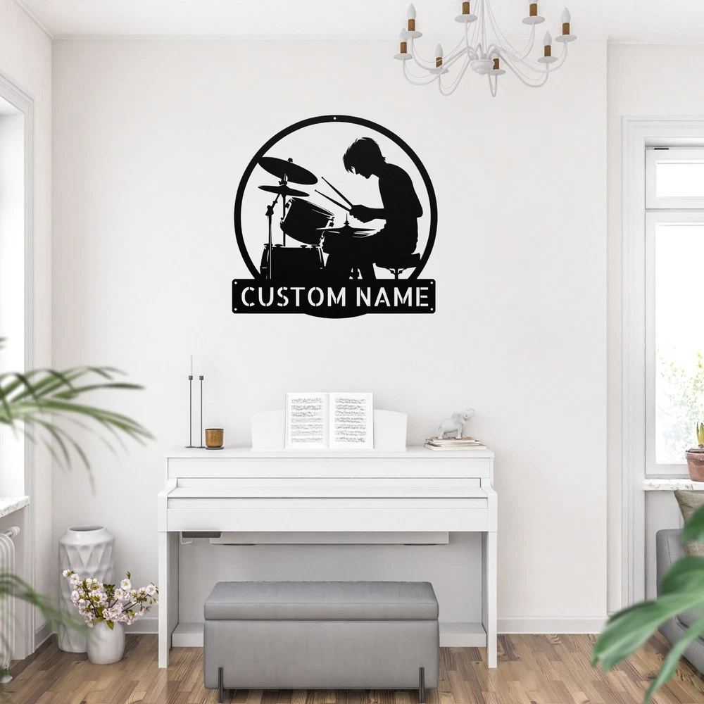 Product Description Personalized Rock Drummer Metal Sign Custom Name Decor Gift for Music Lovers Get ready to rock with our Personalized Rock Drummer Metal Sign ! This striking sign is a must-have for any music lover, drummer, or band enthusiast. Perfect for adding a touch of personality to your home, studio, or office. Made from 16 gauge high-quality metal , this sign is not only durable but also designed to withstand the test of time. The powder coating ensures that it is dust, weather, and water-resistant, making it suitable for both indoor and outdoor display. Key features include: Customizable Name: Personalize it with your name or your favorite drummer’s name for a unique touch. Durable Material: Built to last, this sign is perfect for displaying your love of music. Great Gift Idea: An ideal present for Christmas, birthdays, or any special occasion for musicians and music fans. Stylish Decor: Perfect for home, studios, or music rooms, adding a personal and creative flair. Showcase your passion for drumming with the Personalized Rock Drummer Metal Sign . It’s not just a decoration; it’s a celebration of your love for music! Service and Color Choice Our metal signs are designed to be personalized just for you, making them the perfect addition to any space! The default color for our signs is Black , but we also offer a variety of beautiful options including Copper, Gold, White, and Silver . After placing your order, simply contact us with your preferred color choice, and we'll ensure your sign is exactly how you envision it. Let’s create something special together!